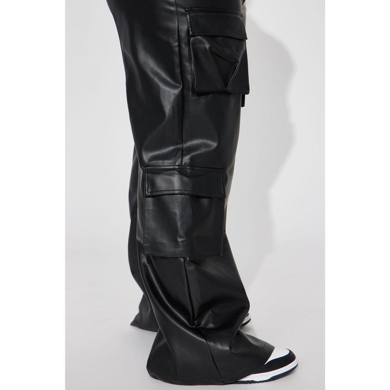 Drop A Pin Faux Leather Cargo Pant - Black