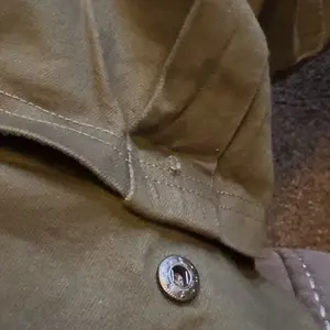 Great quality. Heavy denim-like cotton material. Zipper side pockets, metal button cargo pockets, fits as expected to the size.
