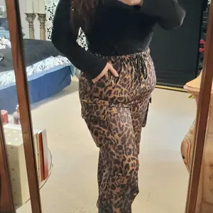 Absolutely LOVE these leopard cargo pants! The fabric is soft, stretchy, and super comfortable. They fit true to size with a flattering high-waisted look. I’ve already gotten compliments at work AND on TikTok! They’re stylish, comfy, and perfect for dressing up or casual wear.