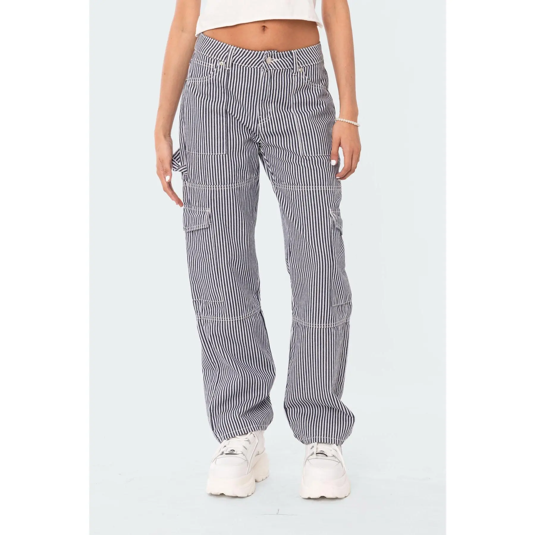Striped Low Rise Baggy Carpenter Jeans