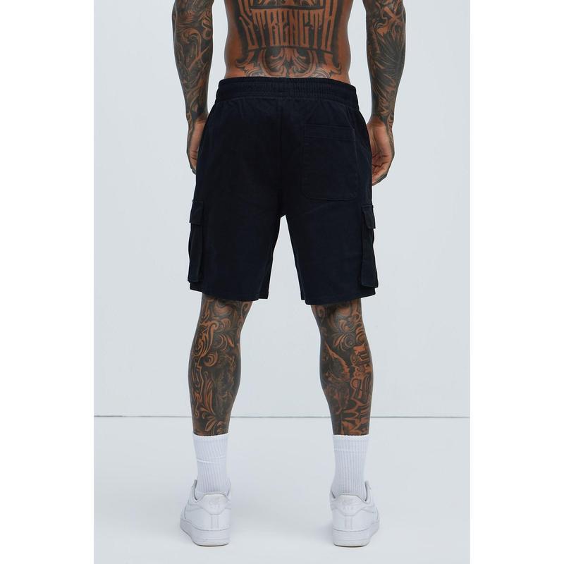 Twill Volley Cargo Shorts - Black