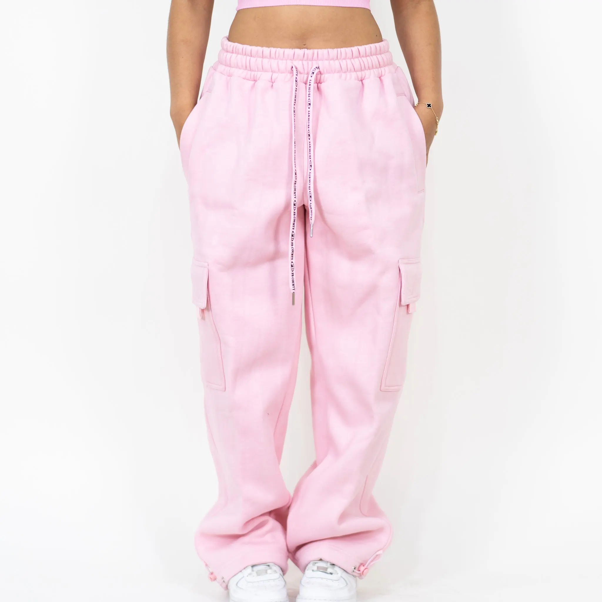 LOVE. They fit baggy. So definitely don’t size up. I’m 5’5, 160 lbs, size 8 in jeans. I got a Medium. These fit perfect. Thick material & so soft! The pink is a MUST! There’s a drawstring at the bottom if you want a more fitted look (so they don’t drag the ground). Perfect length - not too long! 🩷