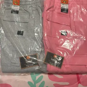 The pants were wet when I received them, full of sweat stains and they stink so bad, also the stitching on them are all frayed and a bunch of thread sticking out. Also they have marker stains on them, very disappointed with this purchase and to top it all off, I never received my giveaway flannel.