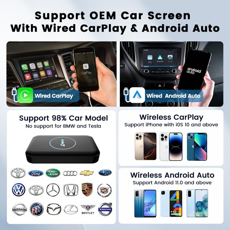 Compatible Cars: Vehicles with built-in wired CarPlay or wired Android Auto.