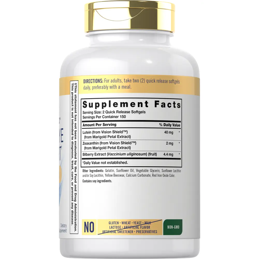 Carlyle Adult Eye Support is an innovative supplement providing these gold standard carotenoids plus a bilberry and blueberry complex, all in quick-release softgels. Designed with you in mind, our eye support formula is made with trademarked Vision Shield derived from a premium source of Marigold extract. It's gluten-free, non-GMO, and preservative free, so nothing will stand in your way of feeling your best every day!