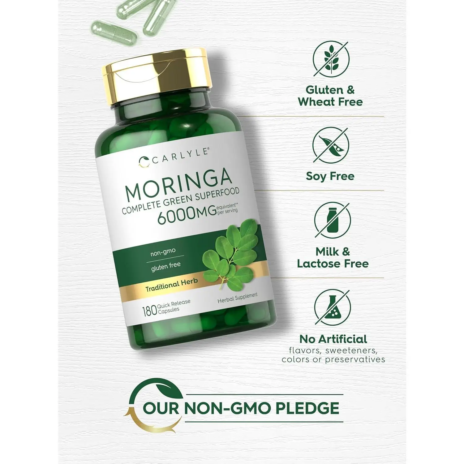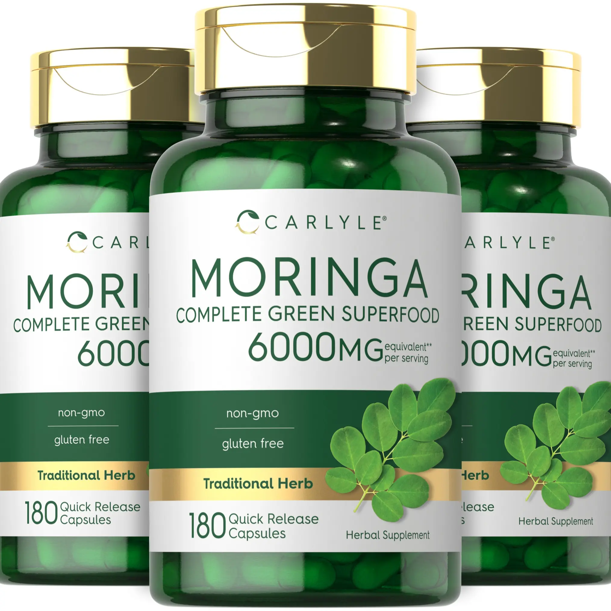 At Carlyle, our Complete Green Superfood supplement is made with the finest ingredients, featuring a 6,000 mg per serving proprietary blend of Moringa 50:1 Extract and Moringa Leaf Powder in convenient quick-release capsules. We test all our herbs for purity and potency, always bringing you the best quality you deserve.