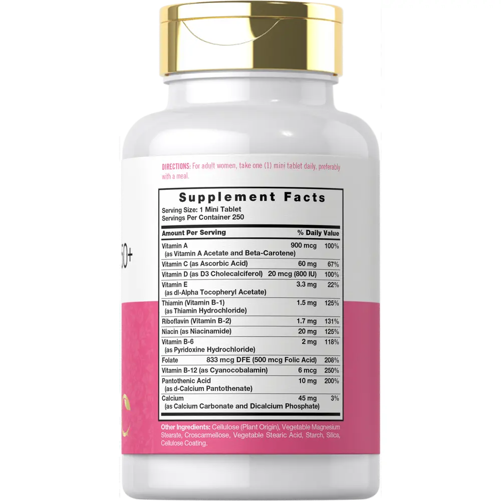Carlyle Multi for Women 50+ is the best way to get all your important nutrients in one place! This comprehensive formula features B-Vitamins, Vitamin D3, Collagen, Calcium and more, with six proprietary blends, including a Healthy Aging Blend, Special Energy Blend, and Hair, Skin, & Nails Blend. Coated caplets are naturally free of gluten, artificial sweetener, and preservatives, providing specialized support that helps powerful women take on the world!