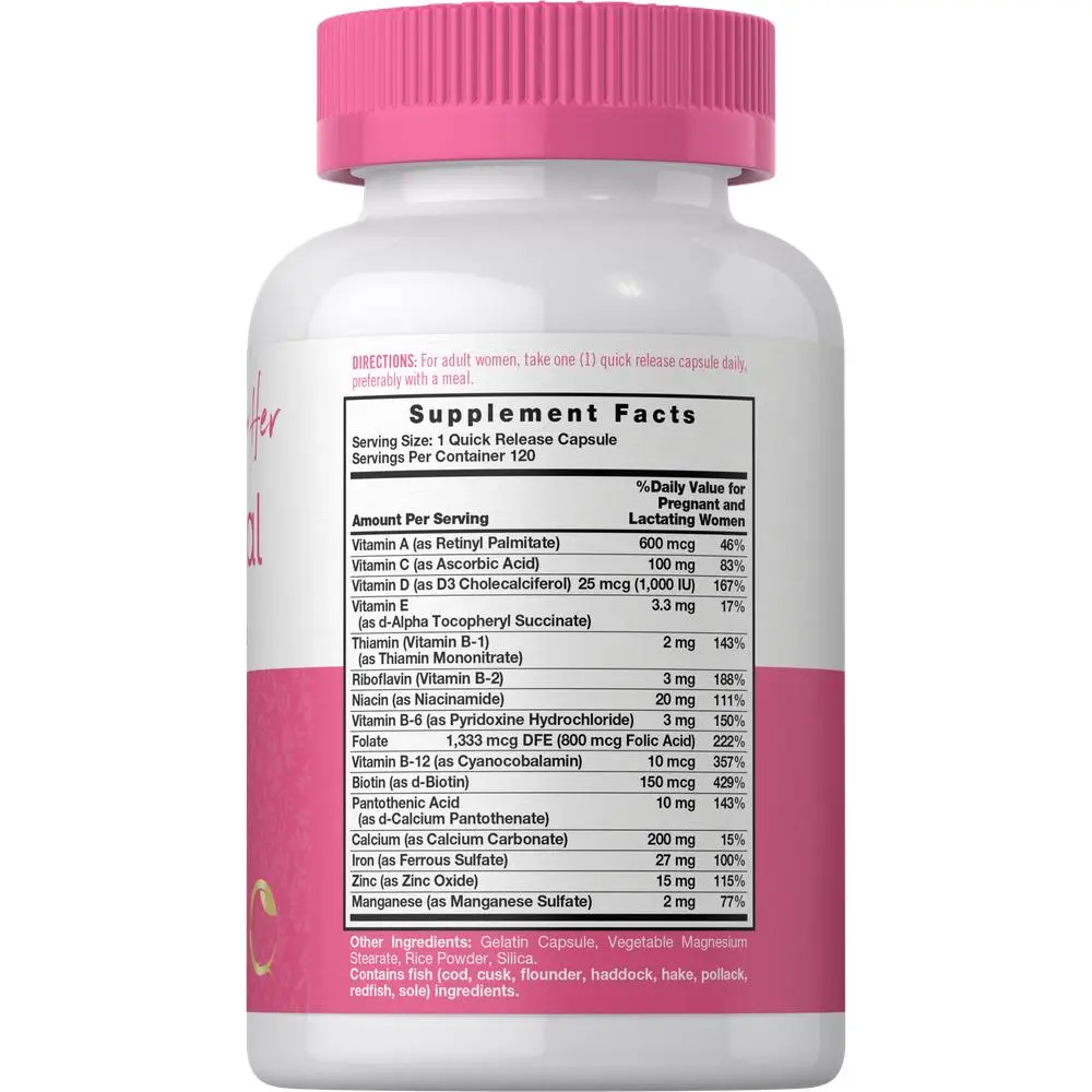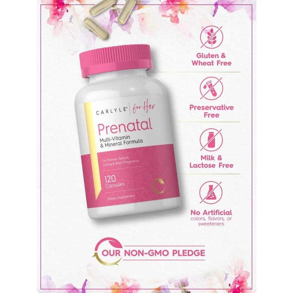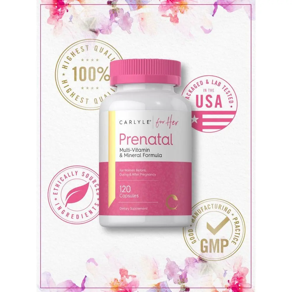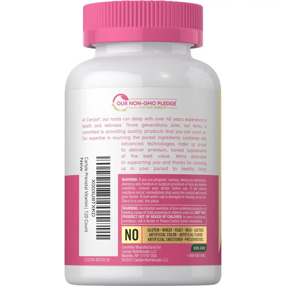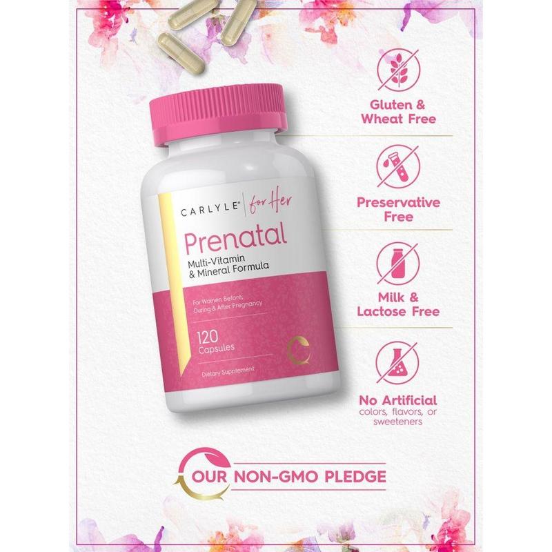 With Carlyle's Multi-Vitamin and Mineral Prenatal, nutrition is one less thing to worry about! Quick release capsules feature Vitamins A, B, C, D, and E, Folate (Folic Acid), Calcium, Biotin, Iron, and more - all specifically designed for before, during, and after pregnancy. Our formula is gluten free and non-GMO, made with no artificial flavor, sweetener, or preservatives, delivering the exceptional quality women deserve!