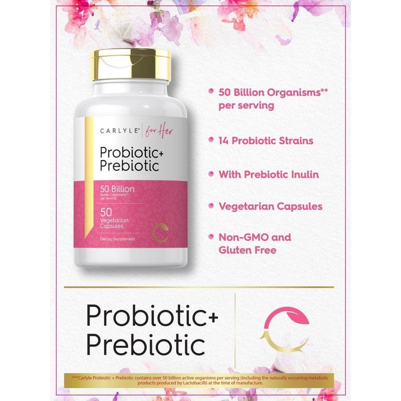 Carlyle Prebiotic and Probiotic for Women | 50 Billion Active Organisms Per Serving | 50 Capsules | Vegetarian Supplement for Women