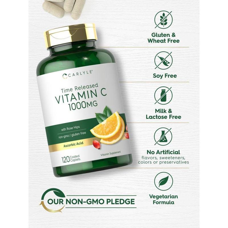 At Carlyle, our Vitamin C-1000 is a high potency supplement scientifically designed with time-released, coated caplets that help slowly deliver this nutrient for optimal absorption. Each caplet contains 1,000 mg of Vitamin C, enhanced with Rose Hips for additional naturally occurring antioxidants. Our vegetarian formula is gluten-free and non-GMO, the best formulation you can rely on to meet your daily C requirement.