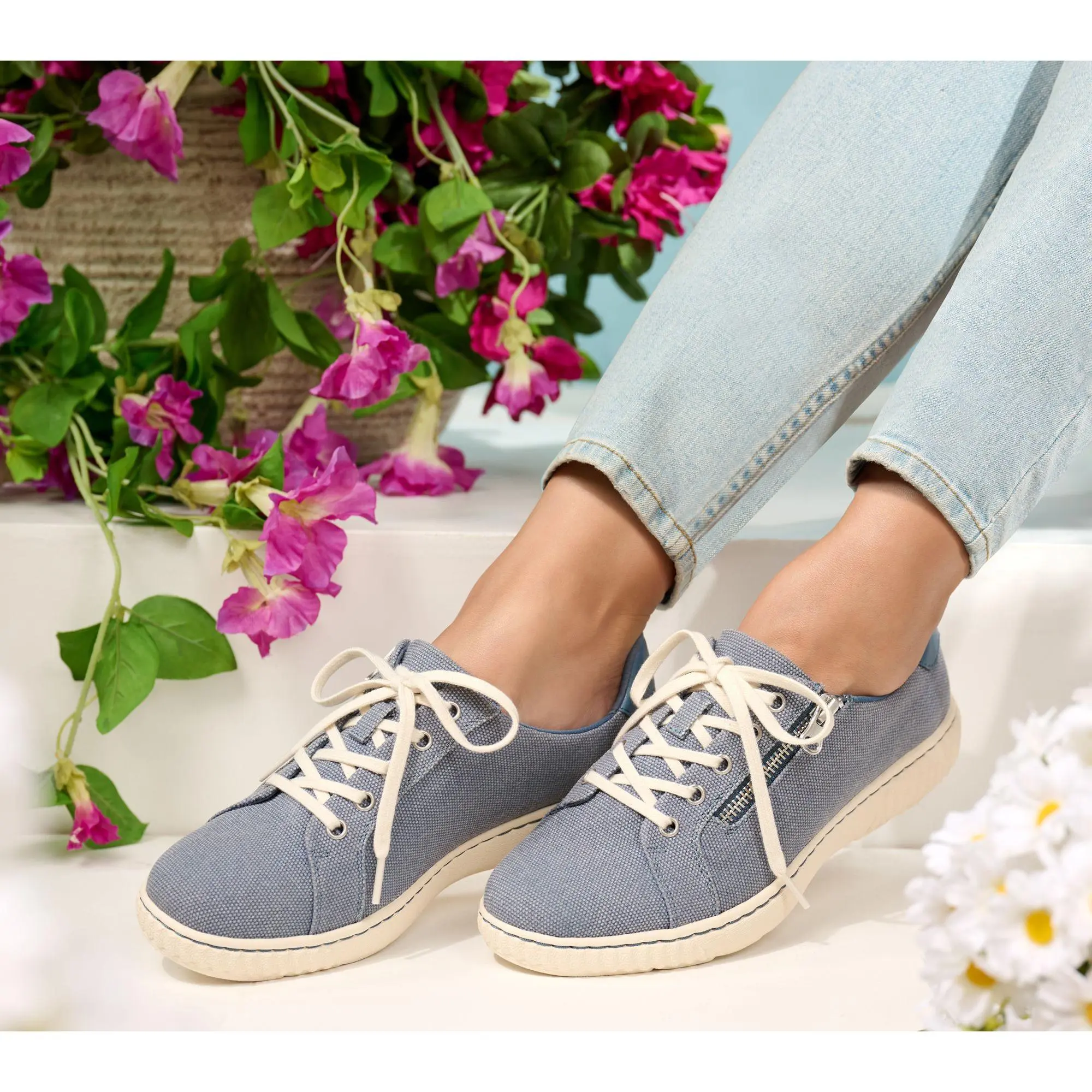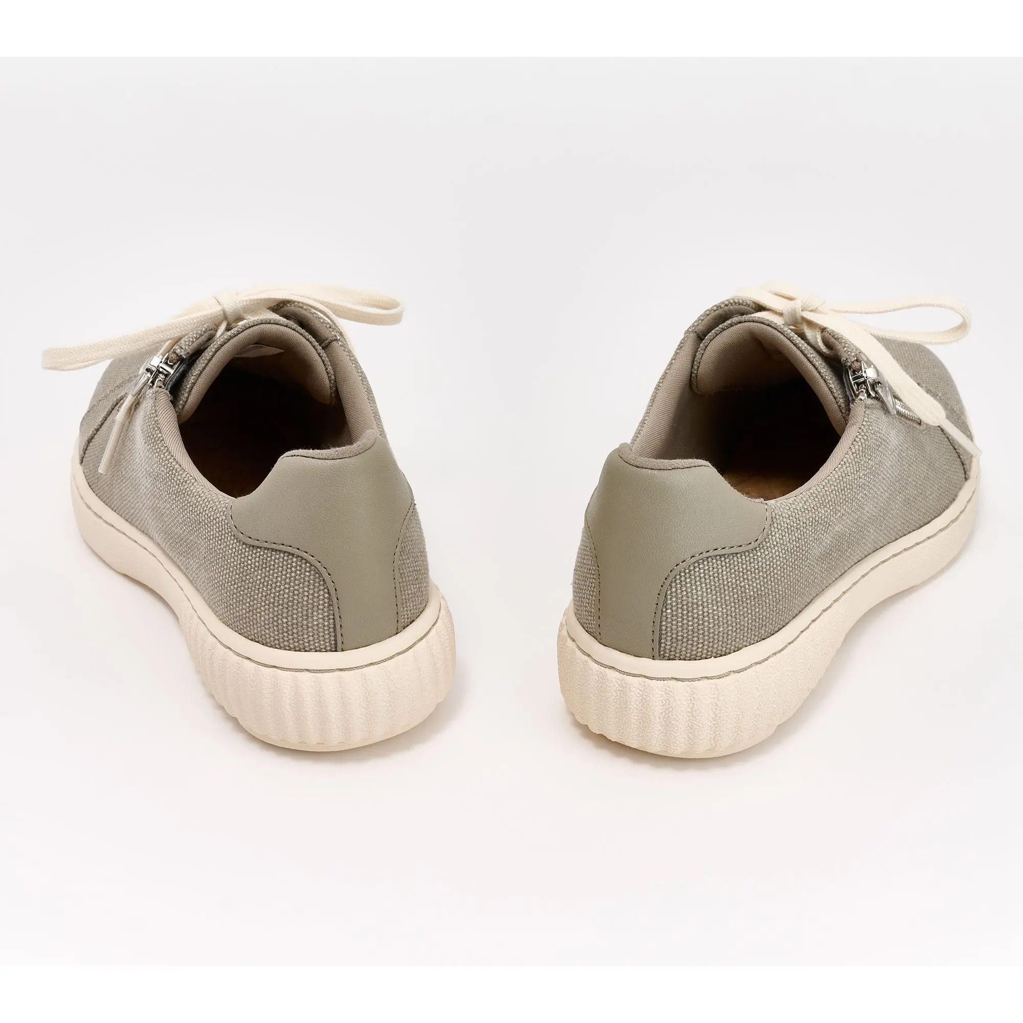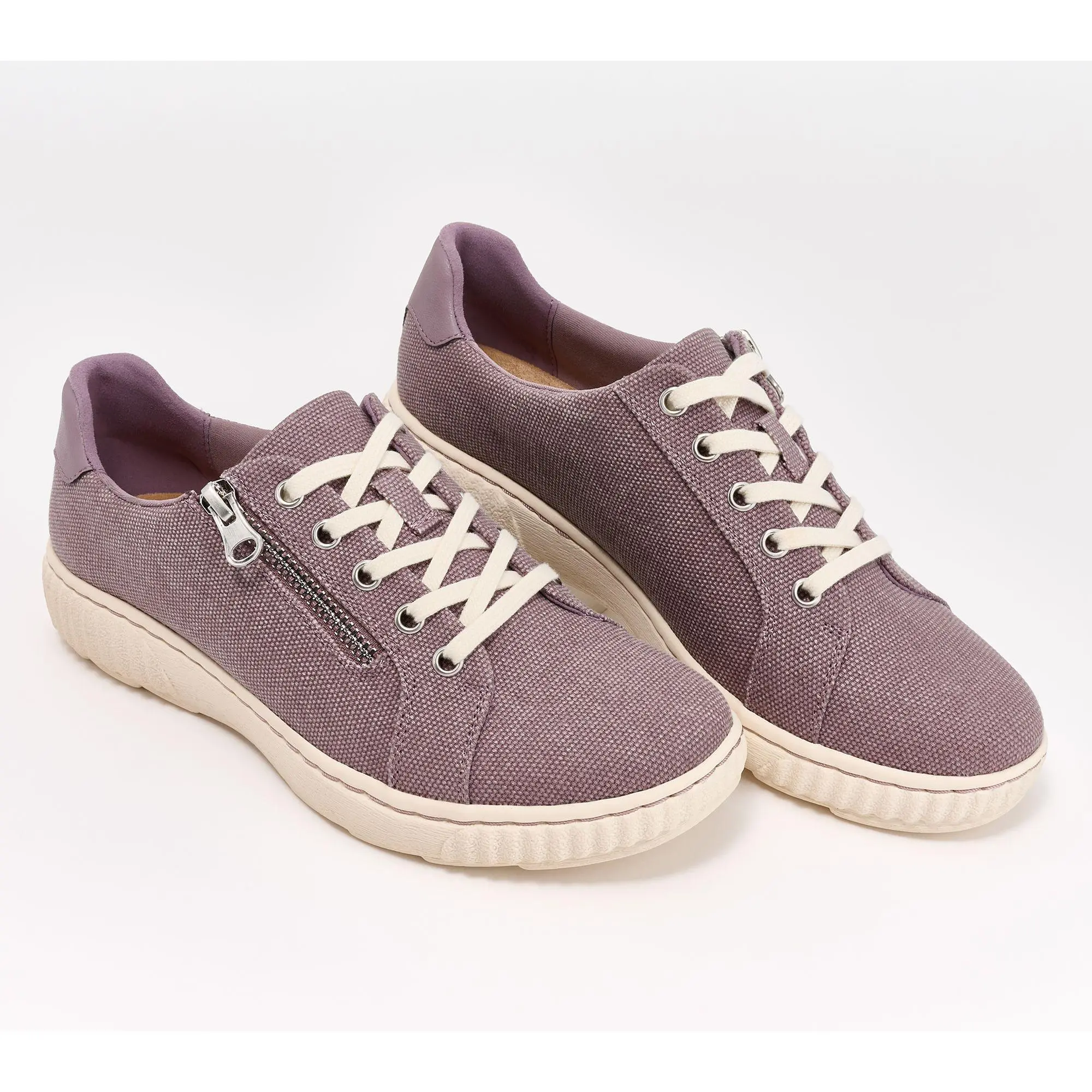 The cushioned design is sporty in spirit, but cute enough to be considered for more elevated destinations. Crafted in comfy canvas and built on the footwear-favorite Caroline bottom, these sneaks get their snazzy style from leather-like accents, stitched details, and a fashionable (and functional!) side zipper.