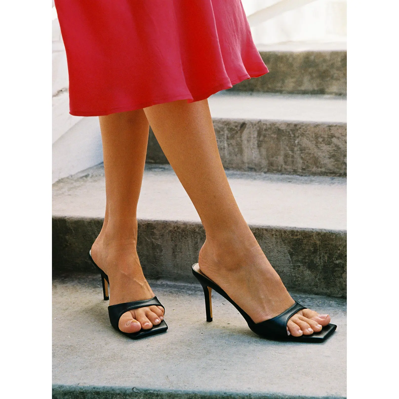 ·Single strap upper, stiletto heel, square toe