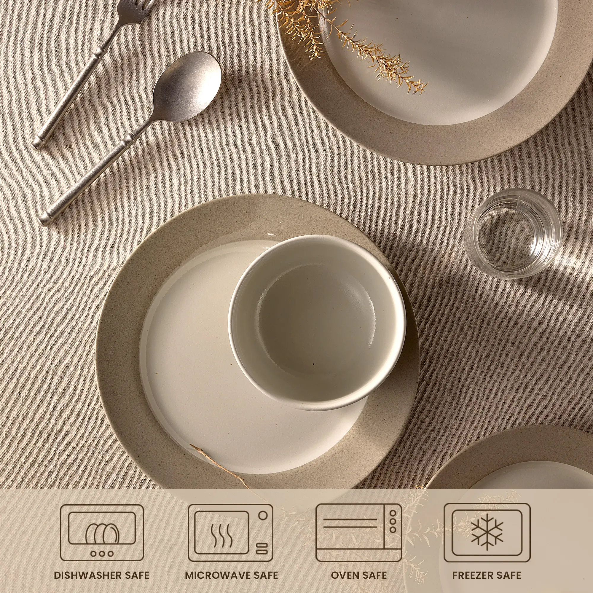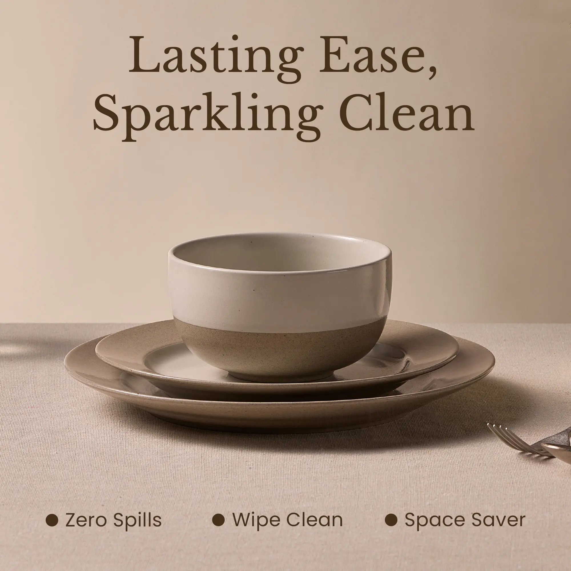 This comprehensive set includes dinner plates, salad plates, bowls, and mugs—all designed to harmonize in style and proportion. Perfect for hosting or upgrading your everyday meals with effortless cohesion.