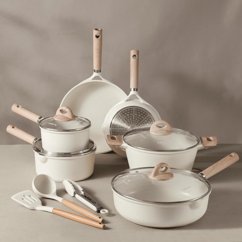 ·Even Heat Distribution: The cookware features a sturdy construction that ensures even heat distribution, preventing hotspots and ensuring perfectly cooked meals every time. A high magnetic conduction stainless steel base allows our kitchen cookware sets to work on all cooktops, including induction.