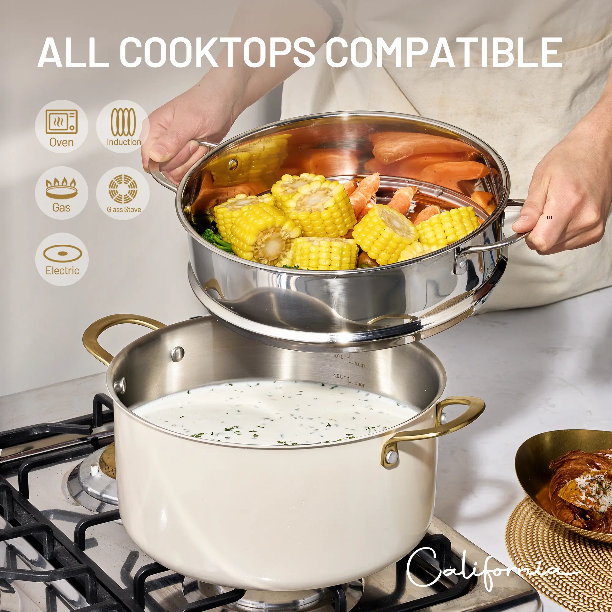 ·2. Universal Stovetop Compatibility: This versatile small kitchen pot fits all stoves including induction, gas, electric, ceramic, and halogen. The CAROTE Stainless Steel Stockpot is designed to work flawlessly on any heat source, making it the perfect addition to every kitchen.