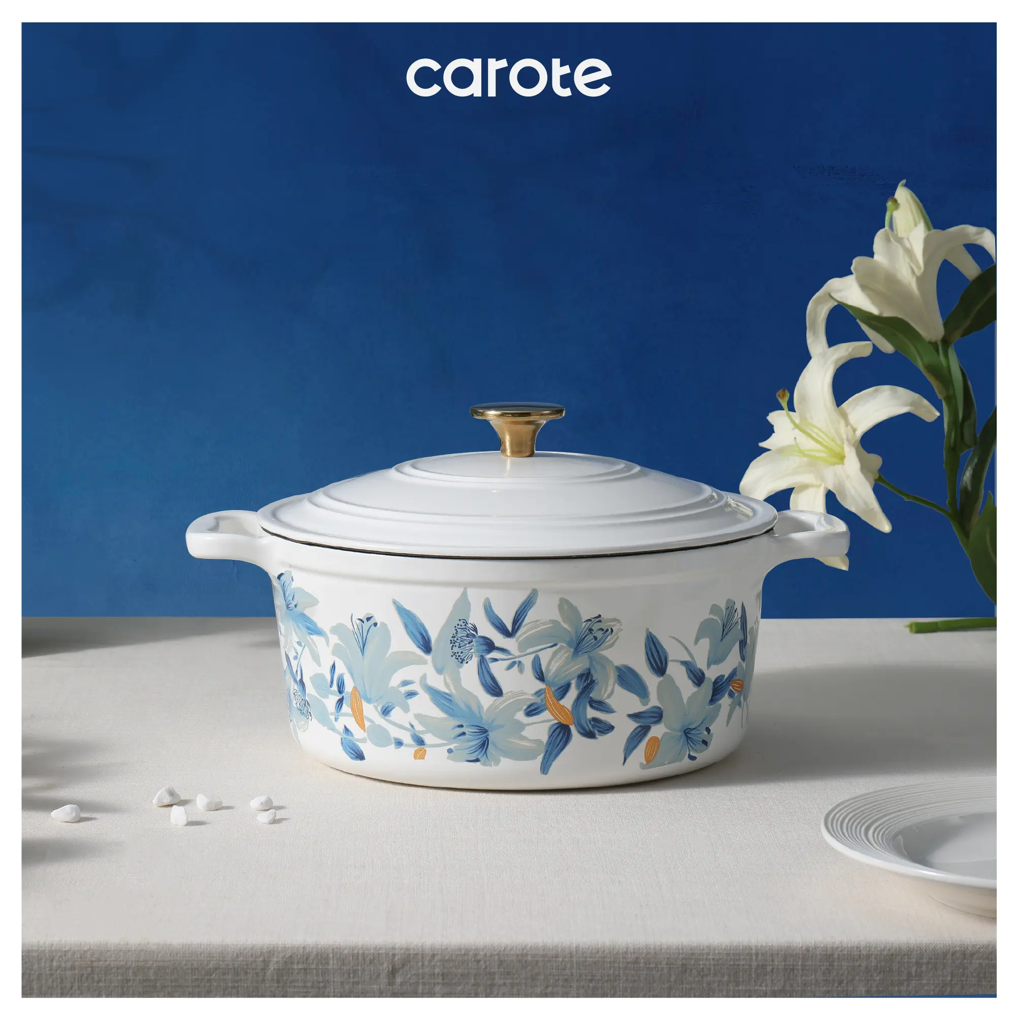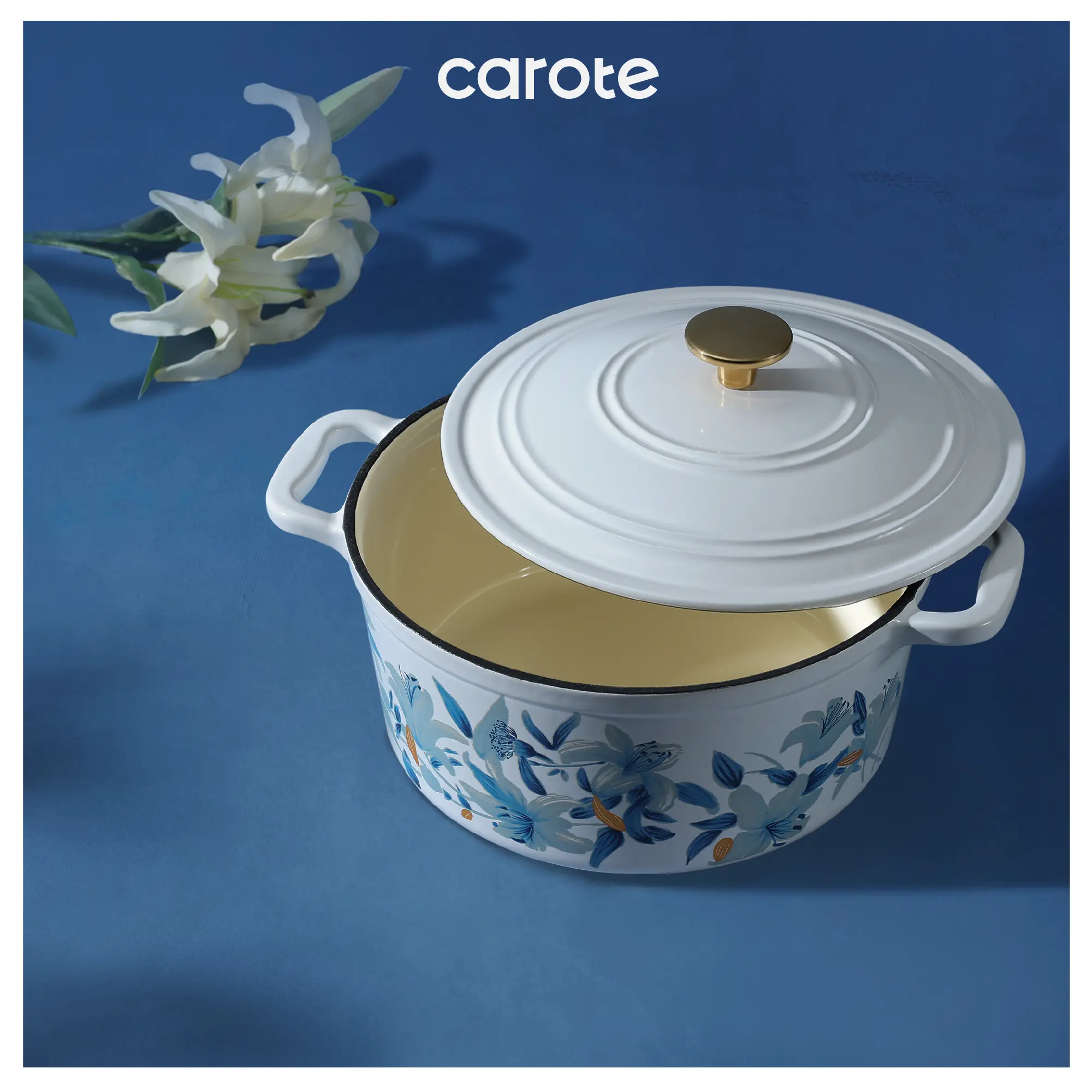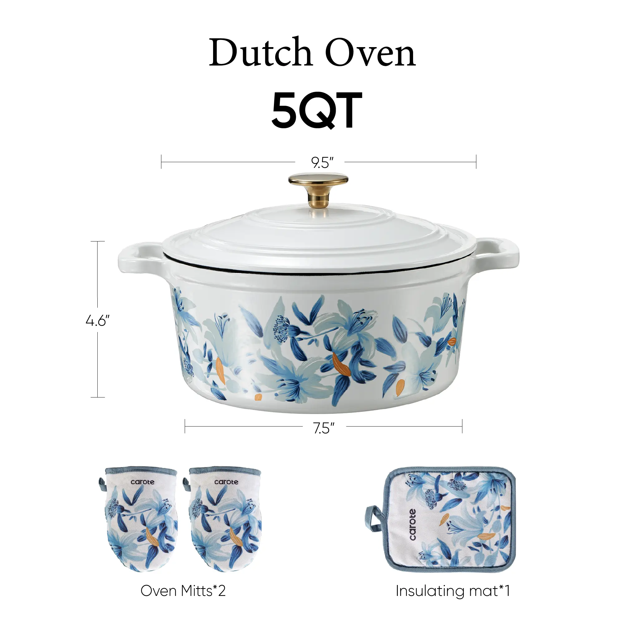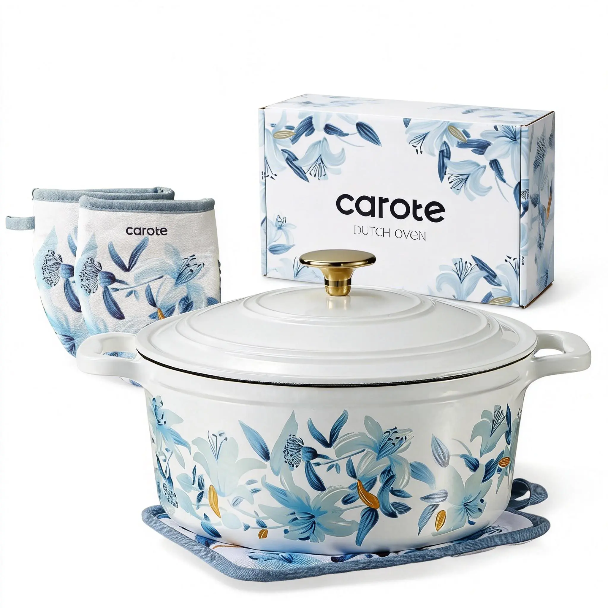 Innovative Design: Carote floral enameled cast iron dutch oven features a floral pattern on a traditional enamel dutch oven, making it both practical and collectible, adding a touch of color to your kitchen. The double-handled enamel dutch oven comes with a lid, matching floral cotton potholders, a pair of oven gloves, and a matching floral gift box, making it the perfect gift for friends and family. You'll receive: an enameled dutch oven, a lid, a cotton potholder, a pair of oven mitts, and a gift box.