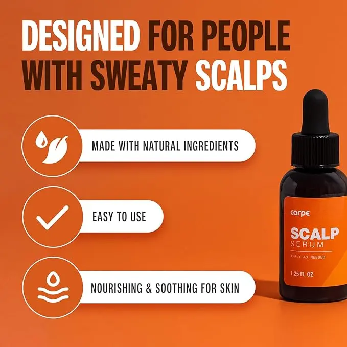 ·Good Hair Day, Every Day: Carpe's Scalp Serum helps eliminate the discomfort of sweaty, oily scalps.