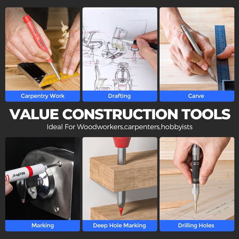 ·Perfect Gift for Craftsmen: Looking for the ultimate gift for the handyman or craft lover in your life? This Nicpro carpenter pencils set is sure to impress! Packed with practical features and high-quality woodworking tools, it's an unbeatable choice for birthdays, holidays, or just because. Transform your woodworking experience with the Nicpro mechanical pencil set