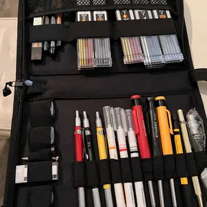 ·VALUABLE COMBINATION IN ONE SET: This set includes 3 sturdy carpenter pencils, 36pcs of 2.8mm 2B lead refills in 6 colors, 3 mechanical pencils 2.0mm with 36pcs refills in 3 colors, and 1 mechanical pencil 1.3mm with 12pcs black lead refills and 12pcs colored lead refills. You'll also receive 3 long-nosed marker pens in 3 colors, 1 carbide scribe tool, 1 positioning center punch, 1 spare needle, 1 sharpener for 2.8mm leads, 2 sharpeners for 2.0mm leads, 1 eraser, 1 circular level, 1 square level, 7 eraser refills, and a large-capacity pen bag. With this comprehensive carpenter pencil set, completing tasks becomes both swift and effortless