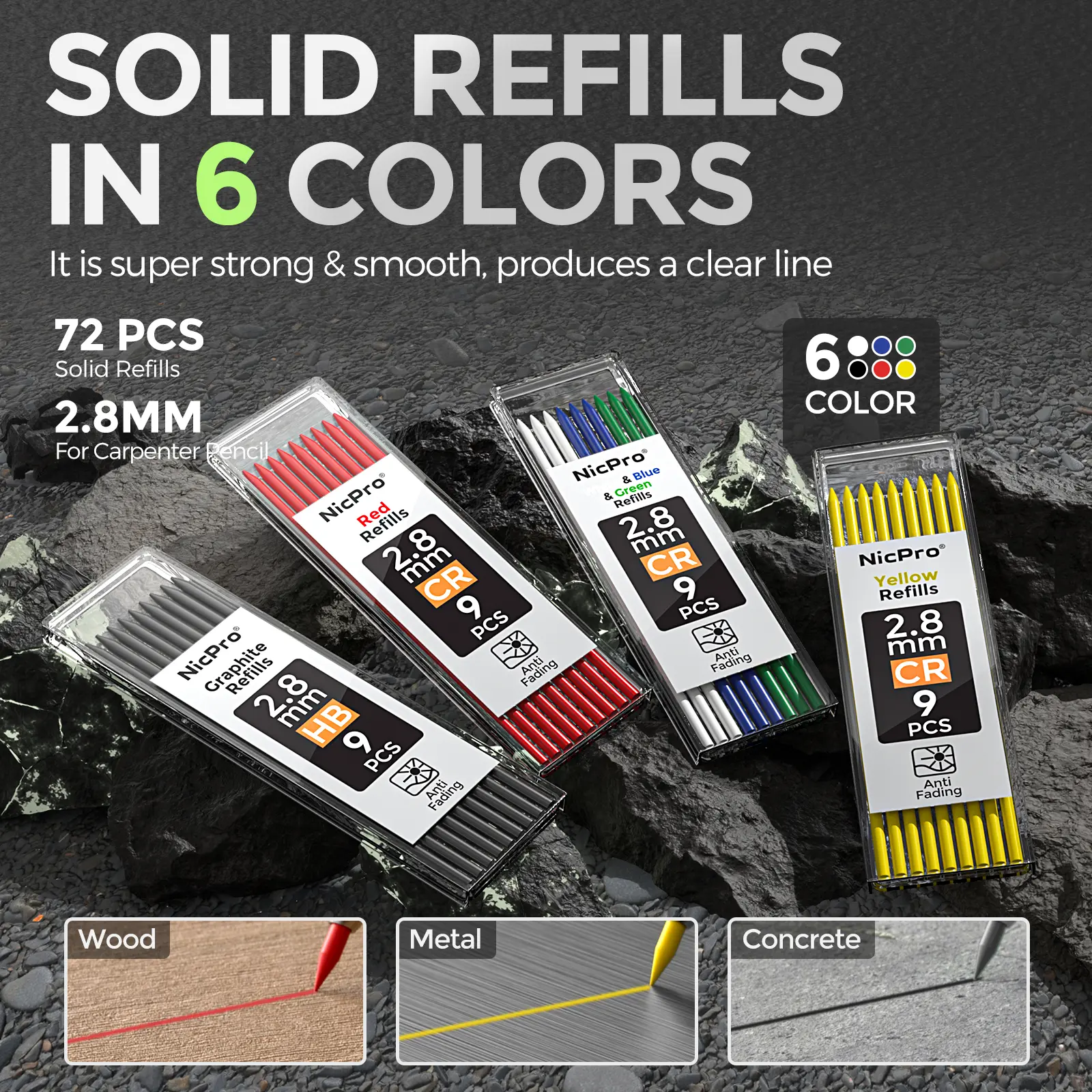 ·Marks on Various Surfaces: This work pencil is matched with a 2.8 mm thick color lead, It can mark on a variety of surfaces, including rough, smooth, dry, and wet materials like wood, metal, plastic, and concrete. Making it a standout choice for woodworkers, electricians, and other tradespeople