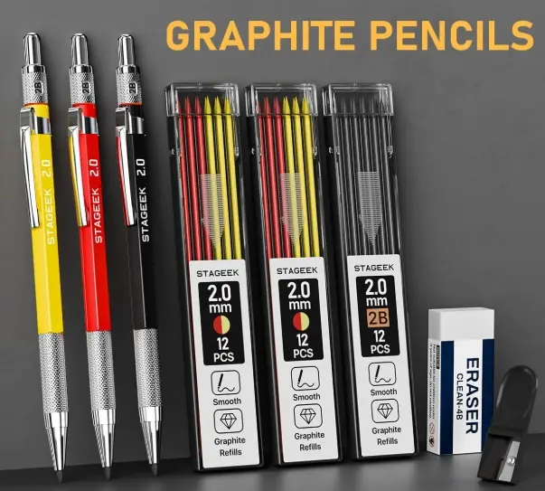 ·【HEAVY DUTY MECHANICAL PENCILS】: The durable 1.3mm and 2.0mm mechanical pencils are ideal companions for engineering drawings. The 2.0mm mechanical pencil features a metal grip with a non-slip texture and perfectly balanced weight. The 1.3mm mechanical pencil’s all-metal body adds a touch of texture and sophistication. This carpenter pencil set also includes a variety of lead colors, providing more distinction and possibilities for your engineering projects