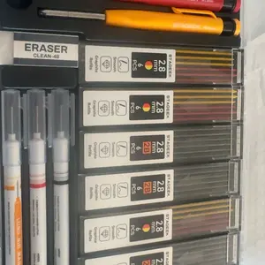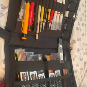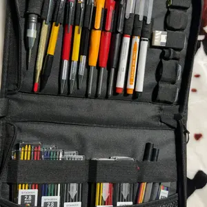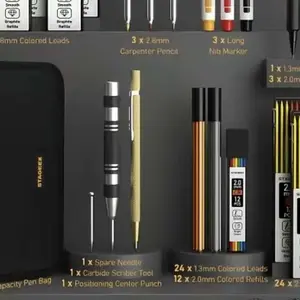 ·【VALUABLE COMBINATION IN ONE SET】: This set includes 3 sturdy carpenter pencils, 36pcs of 2.8mm 2B lead refills in 6 colors, 3 mechanical pencils 2.0mm with 36pcs refills in 3 colors, and 1 mechanical pencil 1.3mm with 12pcs black lead refills and 12pcs colored lead refills. You'll also receive 3 long-nosed marker pens in 3 colors, 1 carbide scribe tool, 1 positioning center punch, 1 spare needle, 1 sharpener for 2.8mm leads, 2 sharpeners for 2.0mm leads, 1 eraser, 1 circular level, 1 square level, 7 eraser refills, and a large-capacity pen bag. With this comprehensive carpenter pencil set, completing tasks becomes both swift and effortless