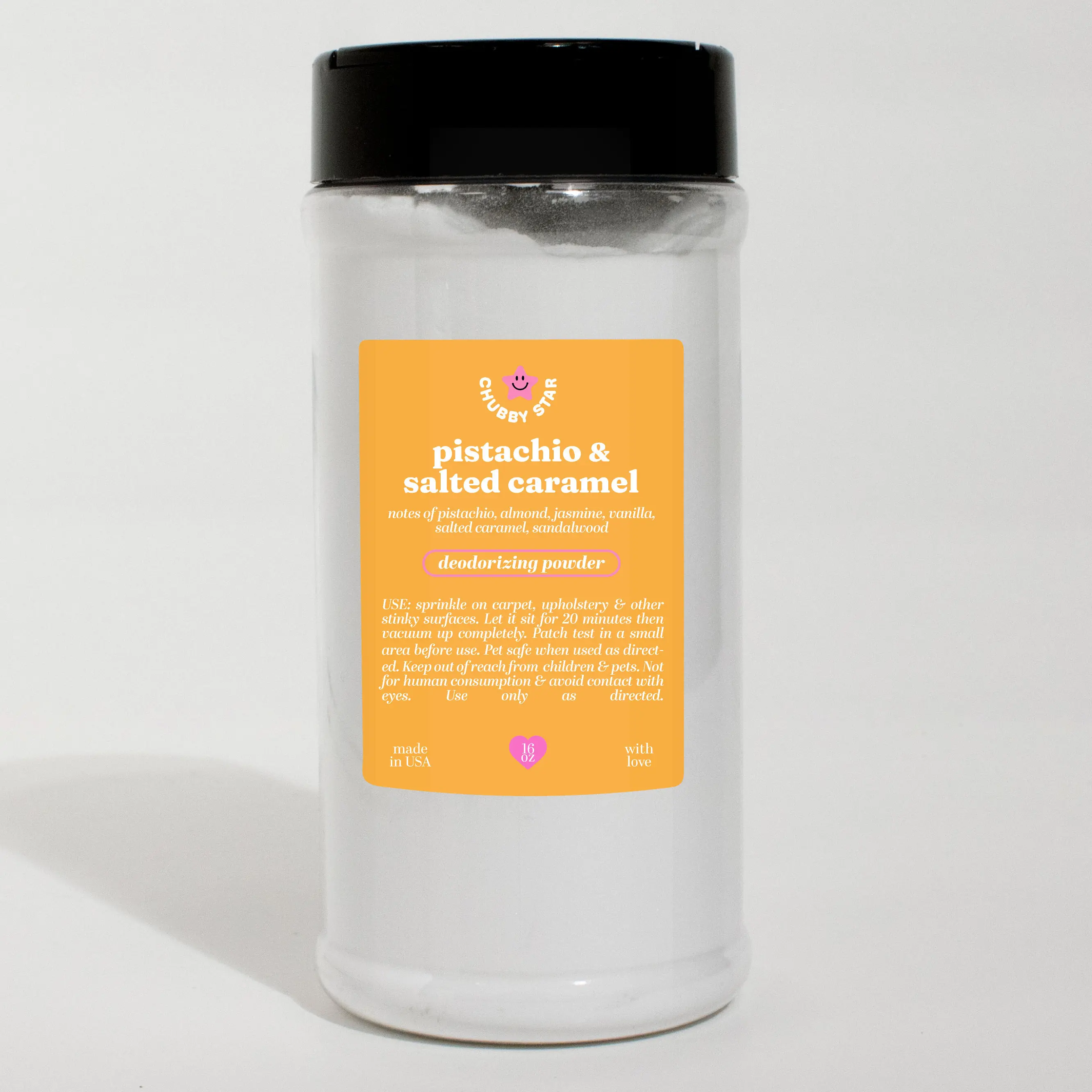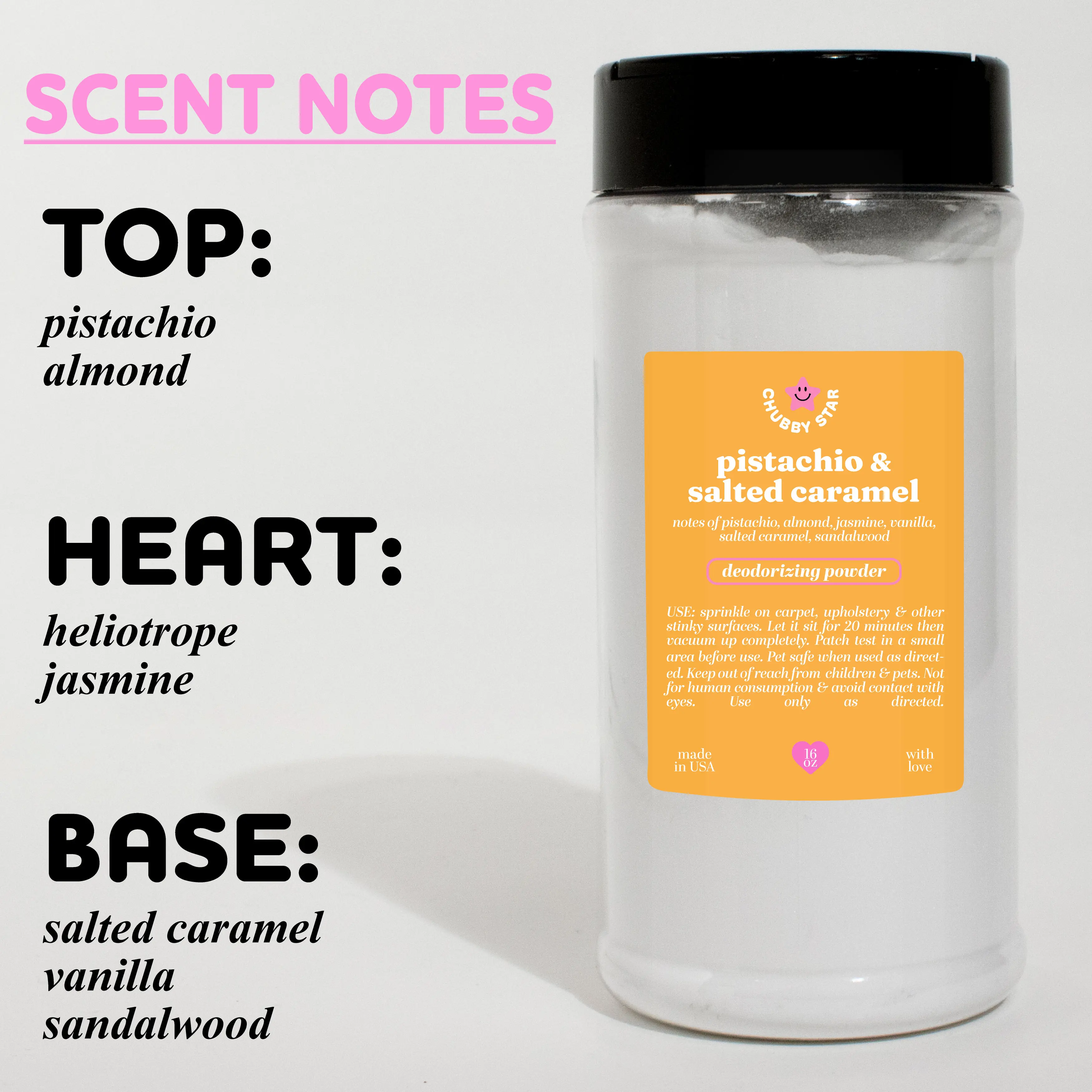 Say hello to our Pistachio Salted Caramel Carpet Freshener Upholstery Deodorizing Powder. It is the perfect solution for keeping your home smelling fresh, clean, and cozy!