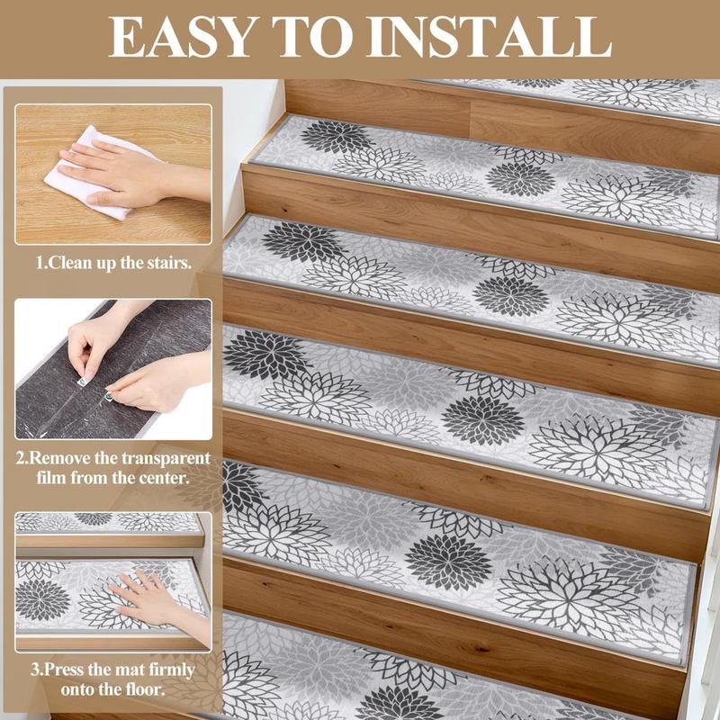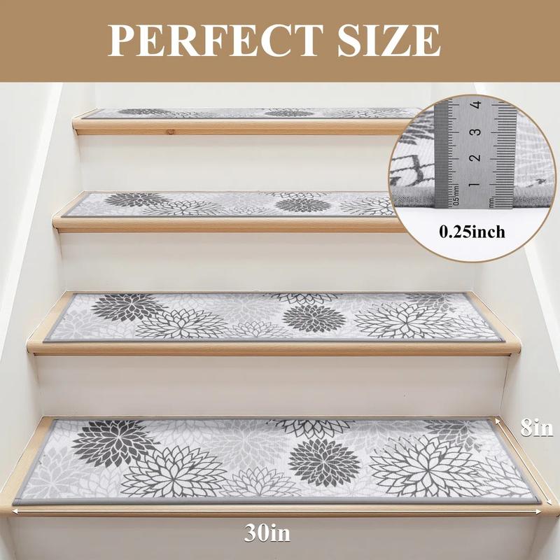 ·Superior Quality & Unique Style: Our stair treads are made of thicken polyester, which is soft and durable, not pull and pile up easily; ensure that you can step comfortably on our stair step rugs and help your feet out of the cold stairs, besides, the design-inspired pattern can decorate your room, giving your family a relaxing environment.