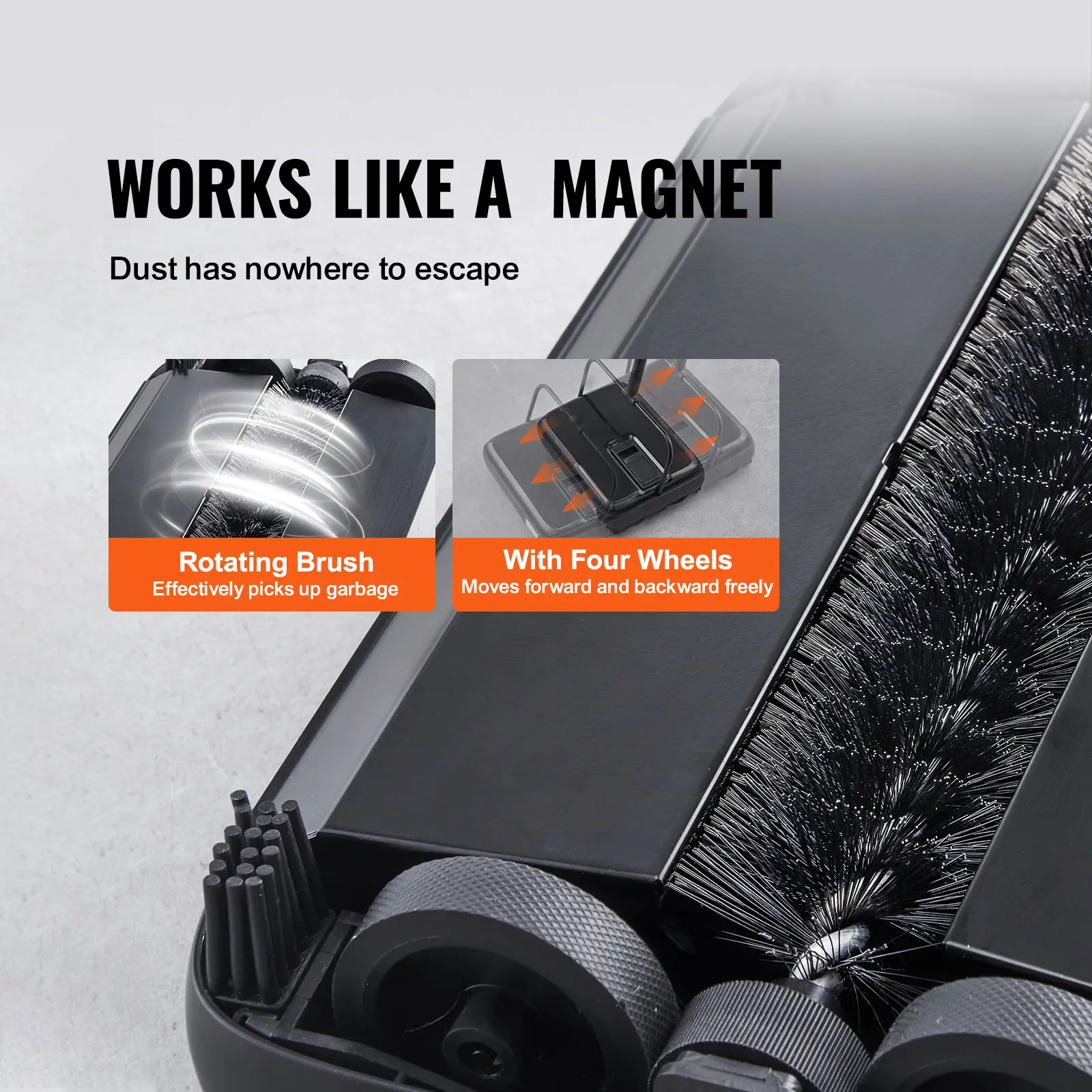 • Clean Like a Magnet: The carpet sweeper manual push is equipped with a roller brush that acts like a magnet, efficiently picking up garbage and dust. With its four-wheel design, it moves freely both forward and backward, making cleaning a breeze.