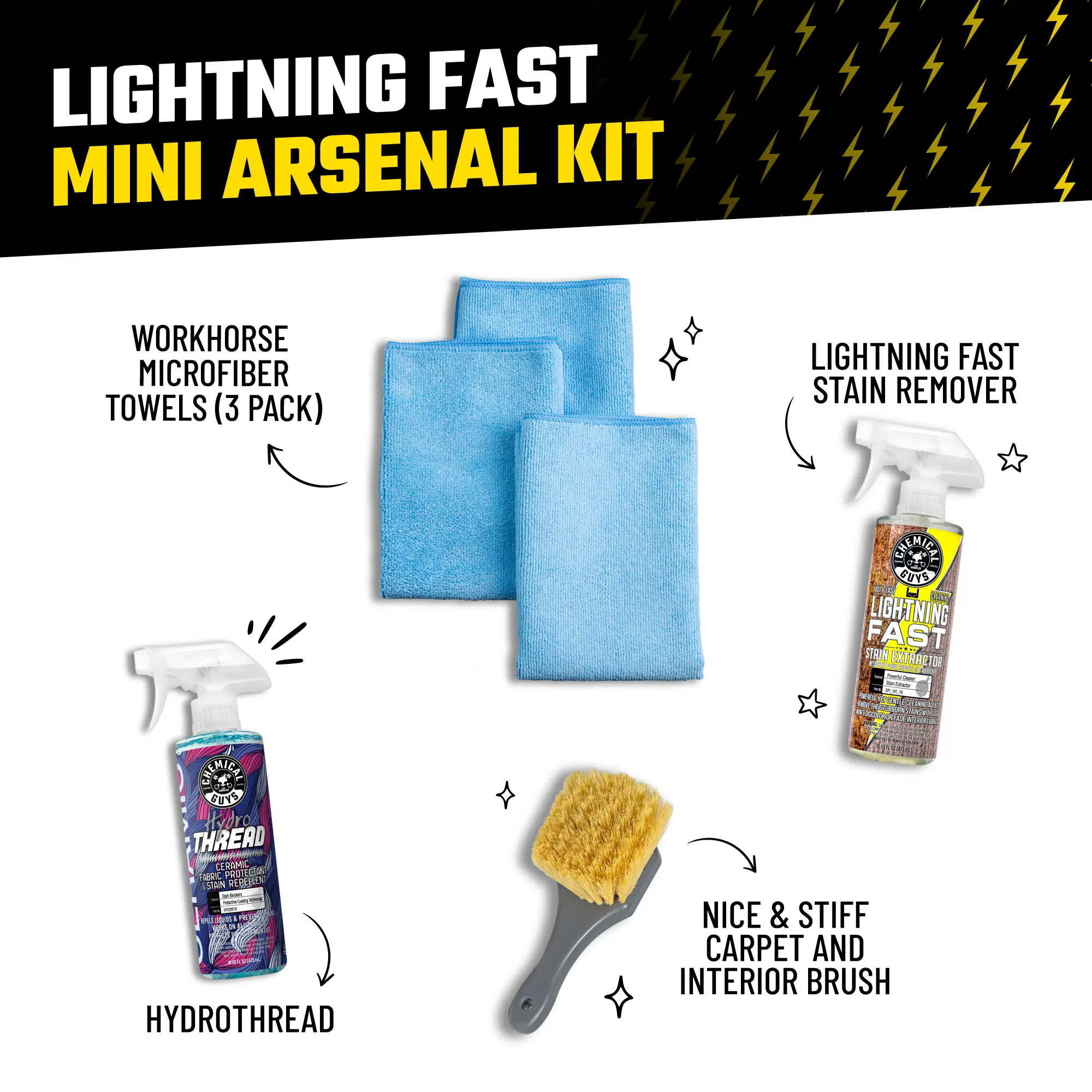·Bundle 3 includes: Lightning Fast + Hydrothread + 3-pack Workhorse Microfiber Towels + Nice + Stiff Brush