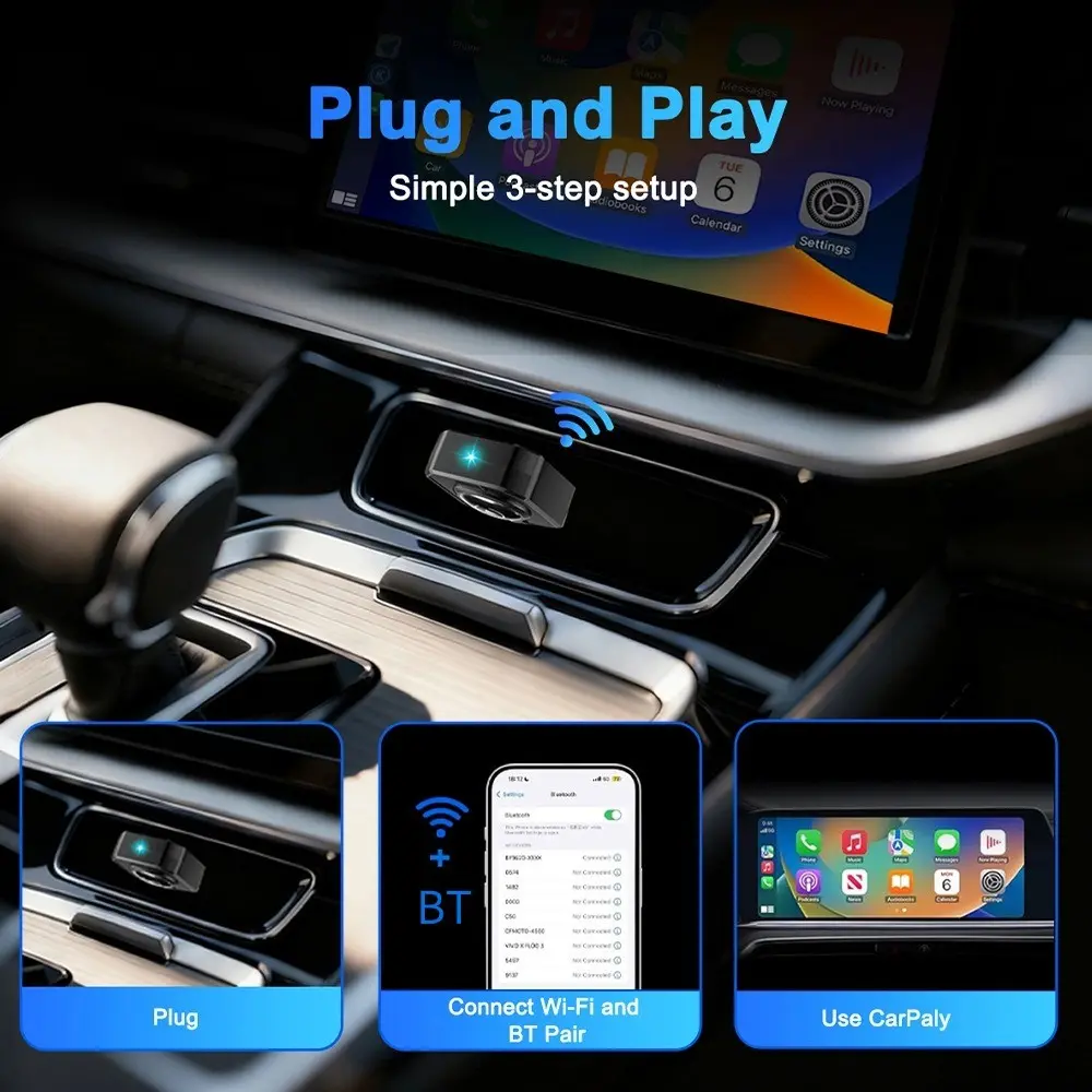 Carplay & Android Auto Wireless Adapter, Convert Wired to Wireless, Plug & Play, Seamless Connection, Hands-Free Driving, Smart Navigation, Wireless Carplay Dongle