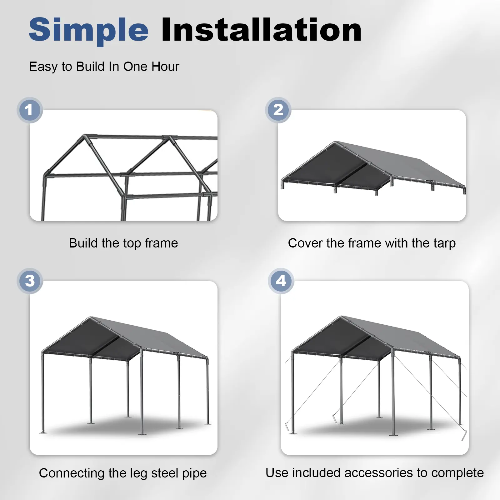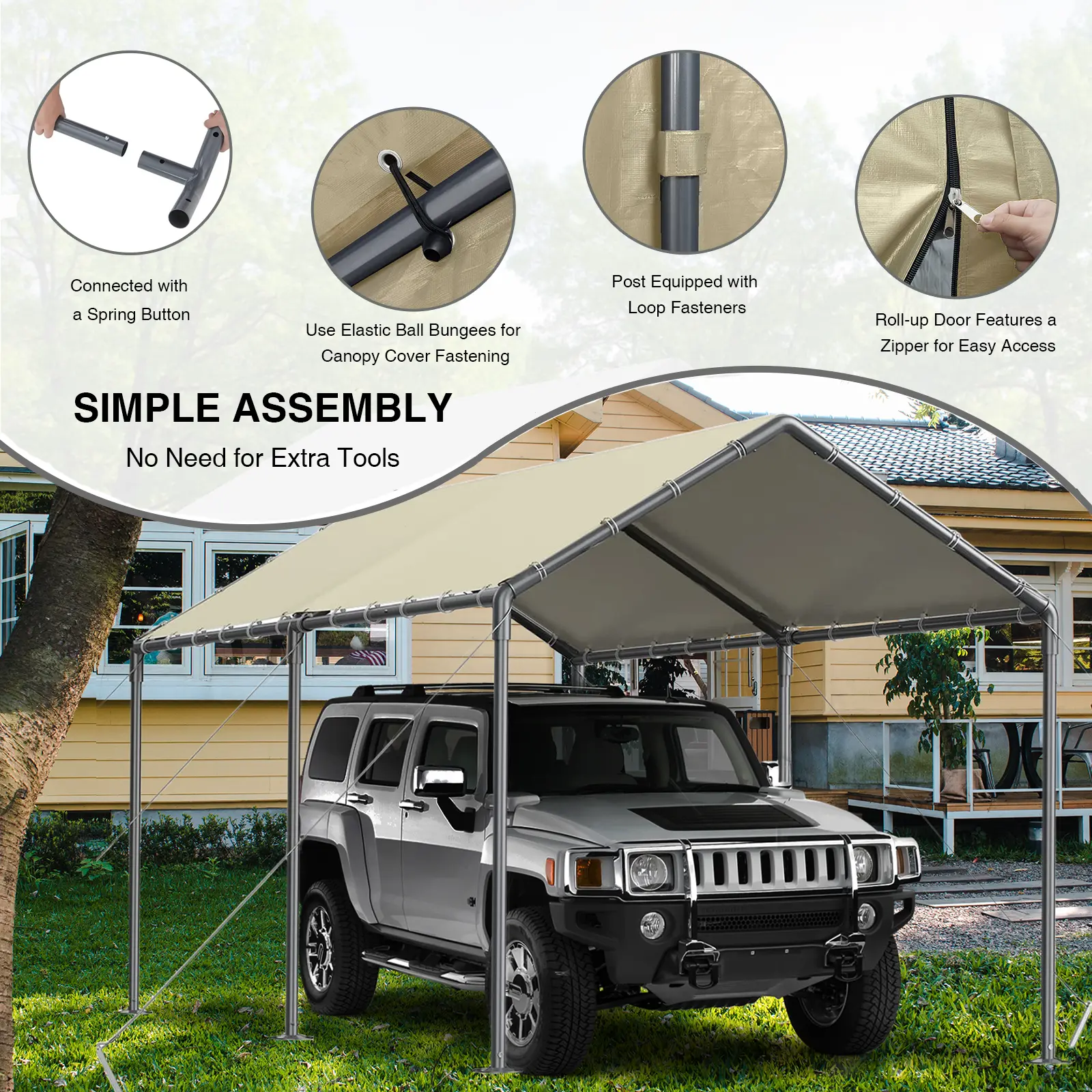 💪 Crafted from sturdy galvanized steel tubes, this carport is rust-resistant. The metal frame ensures longevity and stability.