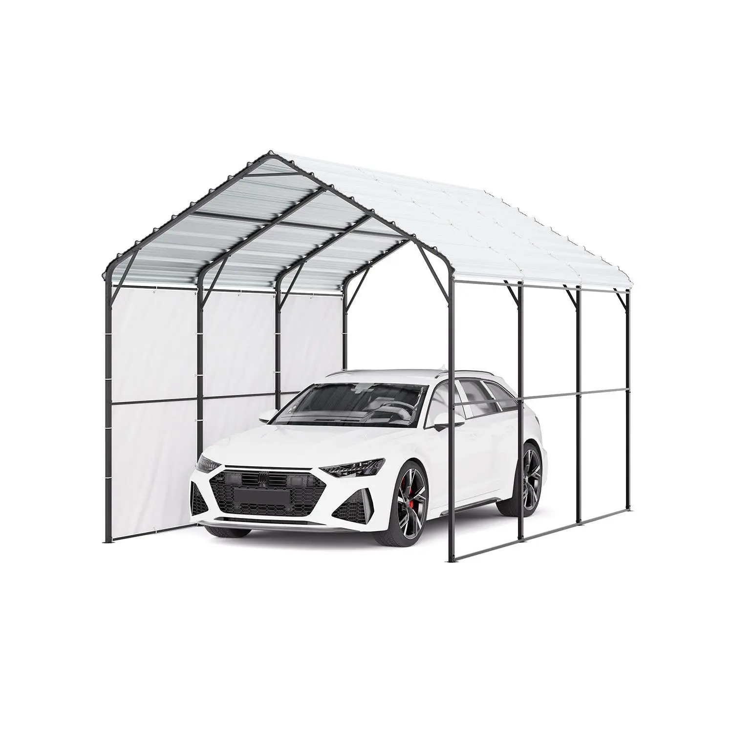 • Solid Structure: The outdoor carport features a reinforced frame with additional steel braces on the roof and sides. Made from 2" high-strength steel pipes with a baked enamel finish, this steel carport offers exceptional rust resistance and durability, ensuring long-term stability in snow and wind, ideal for carports for snow or other demanding conditions.