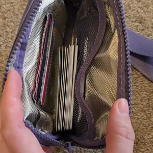 Compartments: 3 Zipper compartments, ID holder, internal mesh pocket, card holders, chapstick holder,