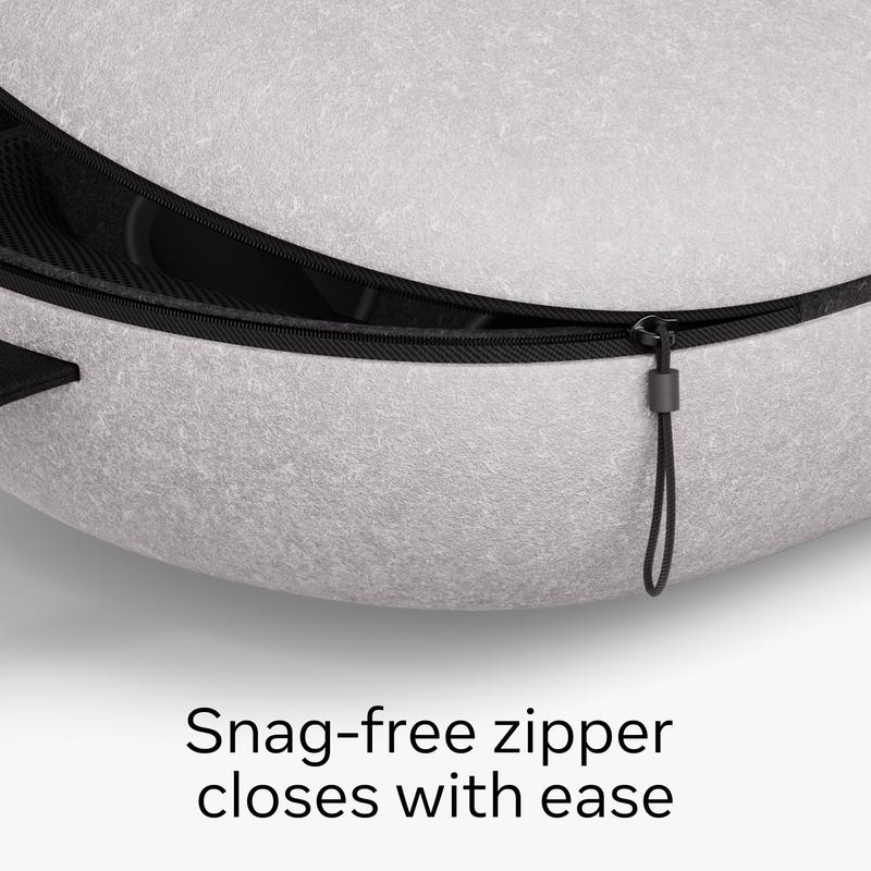 Take your headset and accessories on the go with style and protection. This case is designed to fit your headset, Touch Plus Controllers, charging cable, adapter, headstrap (standard or Elite), and Active Straps. The exterior shell features custom durable felt, and the inner compartments keeps your gear organized and secure. With its lightweight construction, soft hand strap, zipper opening, and rounded profile, the case makes it easy to carry and access your Meta Quest 3/3S and accessories on the go. This premium Meta accessory ensures a perfect fit, durability and convenience for your mixed reality and VR setup.