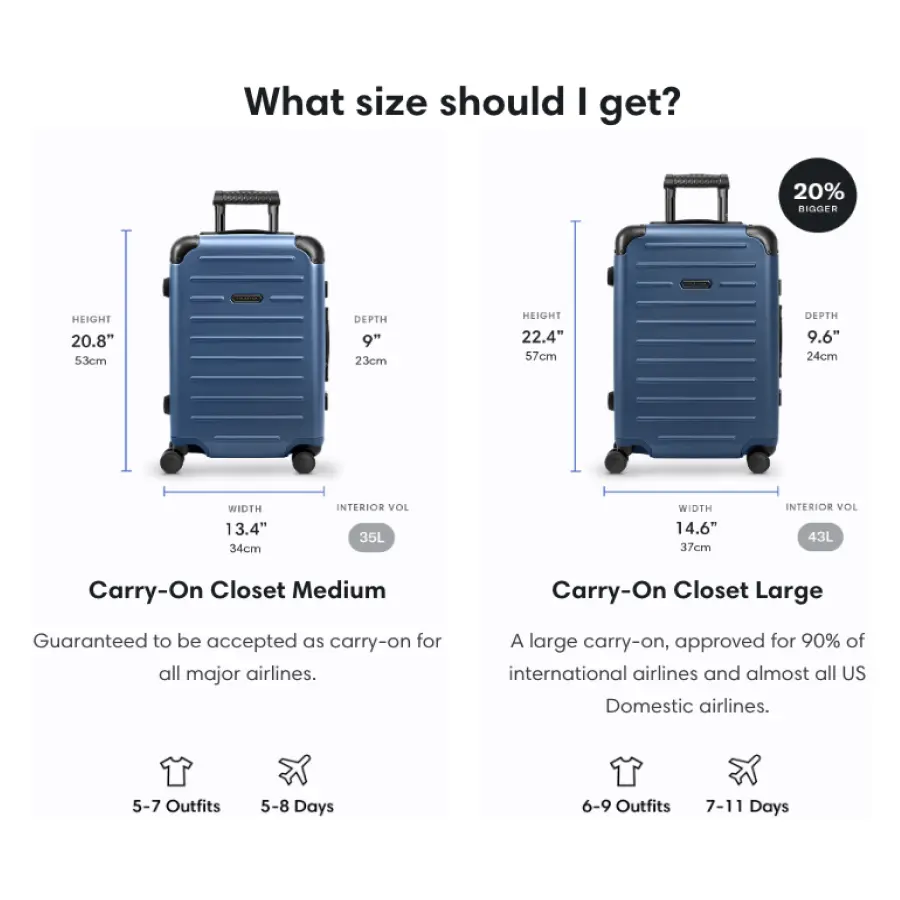 Meet the award-winning Carry-On Closet suitcase. Engineered with our patented built-in closet system, indestructible polycarbonate shell, and integrated USB charging port, The Carry-On Closet will keep you organized anywhere your travels take you.