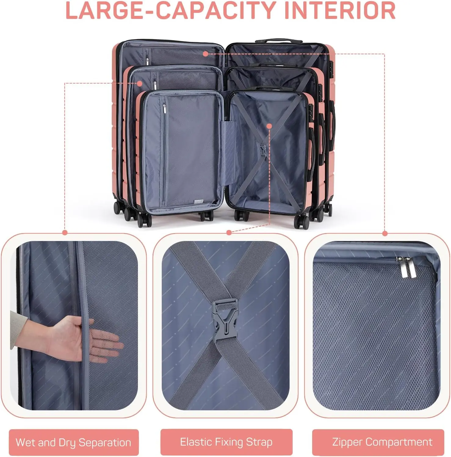 ·【Durable and Lightweight】The luggage is made from high-quality ABS materials that are built to withstand the rigors of travel. Despite its durability, it is also incredibly lightweight, allowing you to pack more without dragging the luggage heavily.