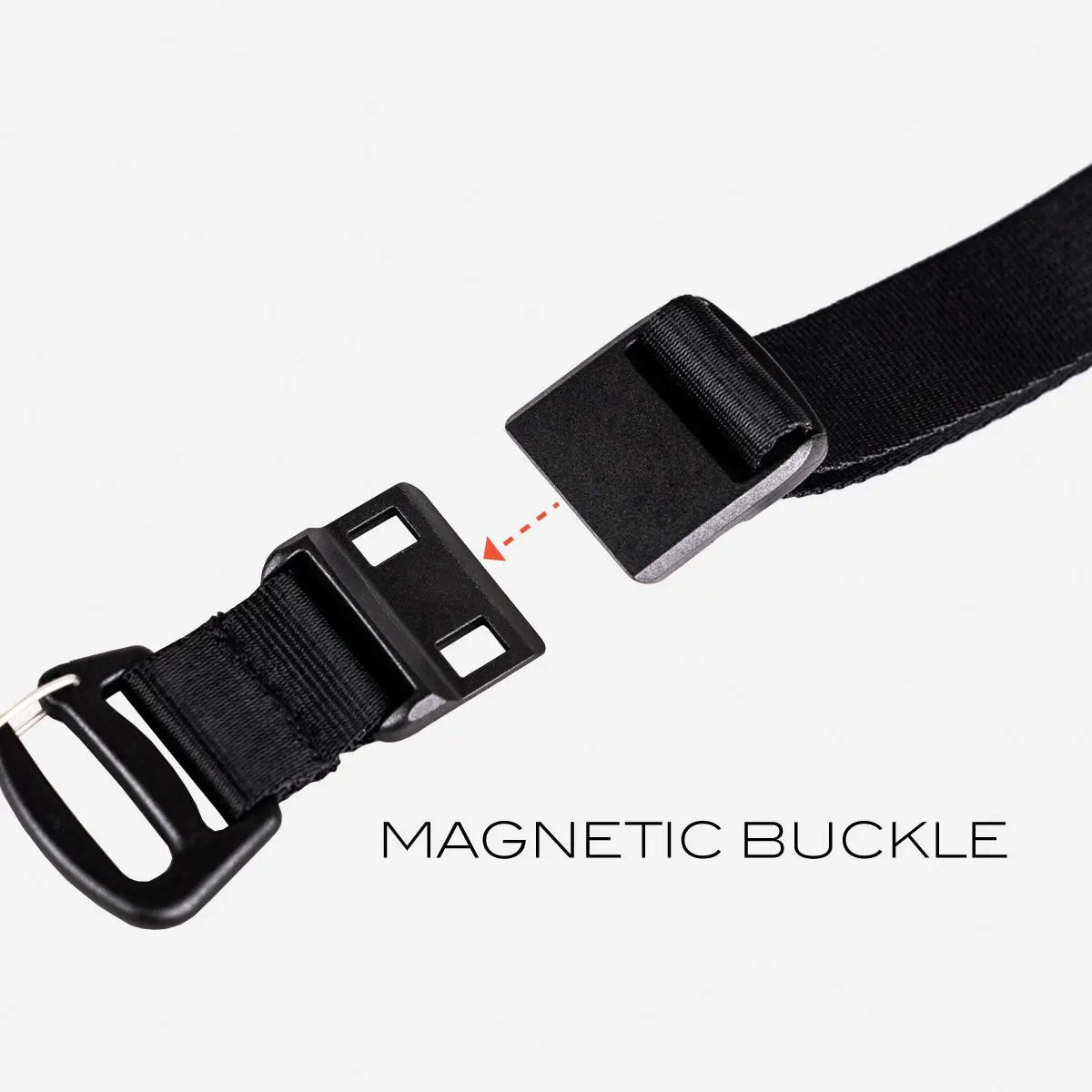 The Carry Strap was designed to provide a unique and functional sling/waist stand-alone carry solution for all sizes of our Tech Bags, Toiletry Bags, and Laptop Cases.