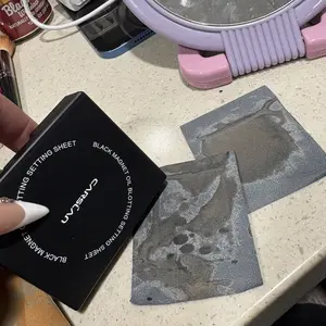 Perfect for on the go , if you have a oily T zone perfect, it has a light powder on each square so it sets your makeup as well !!