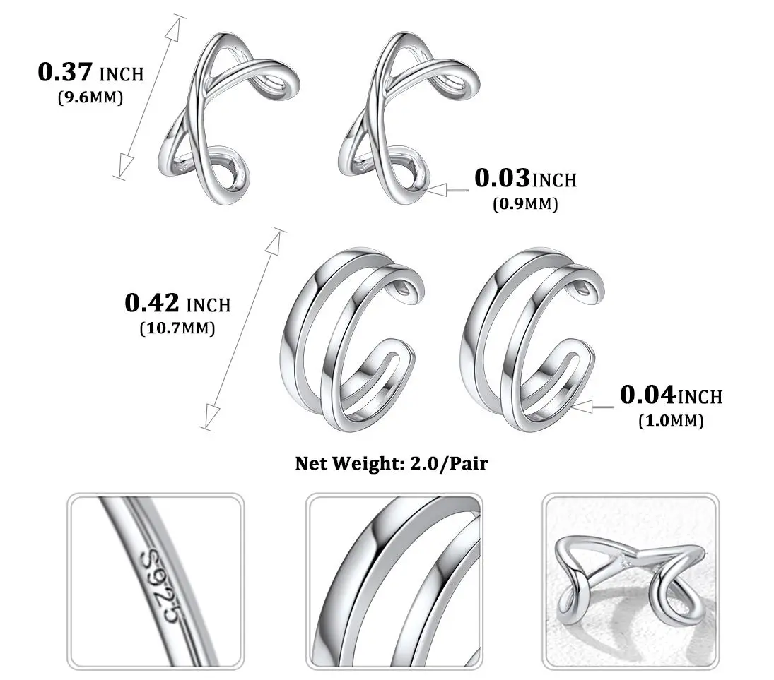 FaithHeart Non Piercing Clip on Cartilage Cuff Earrings for Women