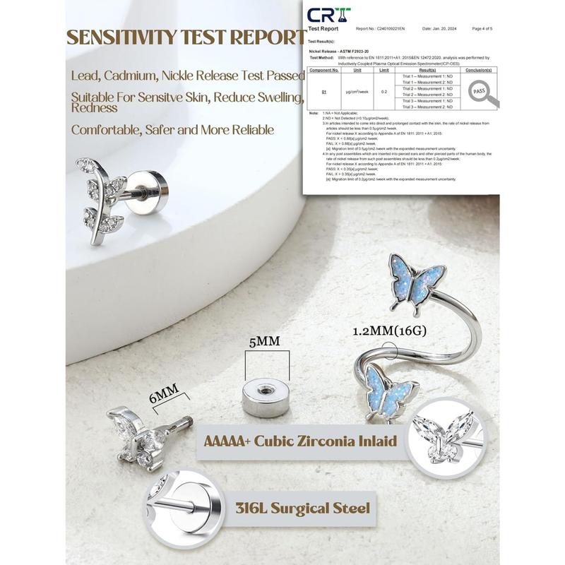 ·Piercing Earrings Pack: One order you will get 9Pcs stainless steel stud earrings in variety styles. There are CZ cartilage stud earrings, star moon stud earrings, butterfly earrings,etc. Small and sophisticated set of flat back stud earrings that you can wear to any occasion, layered in a variety of styles or worn on their own