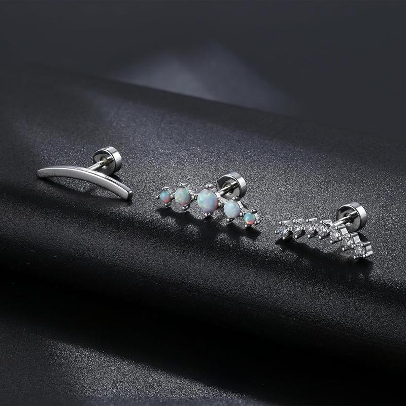 ·STERLING SILVER CARTILAGE EARRINGS: You Will Get 3pcs Cute Stud Earrings, Simple And Sparkling, Can Be Used For Cartilage Earrings, Helix Piercing And Conch Piercing, Add Flair To Your Ears.