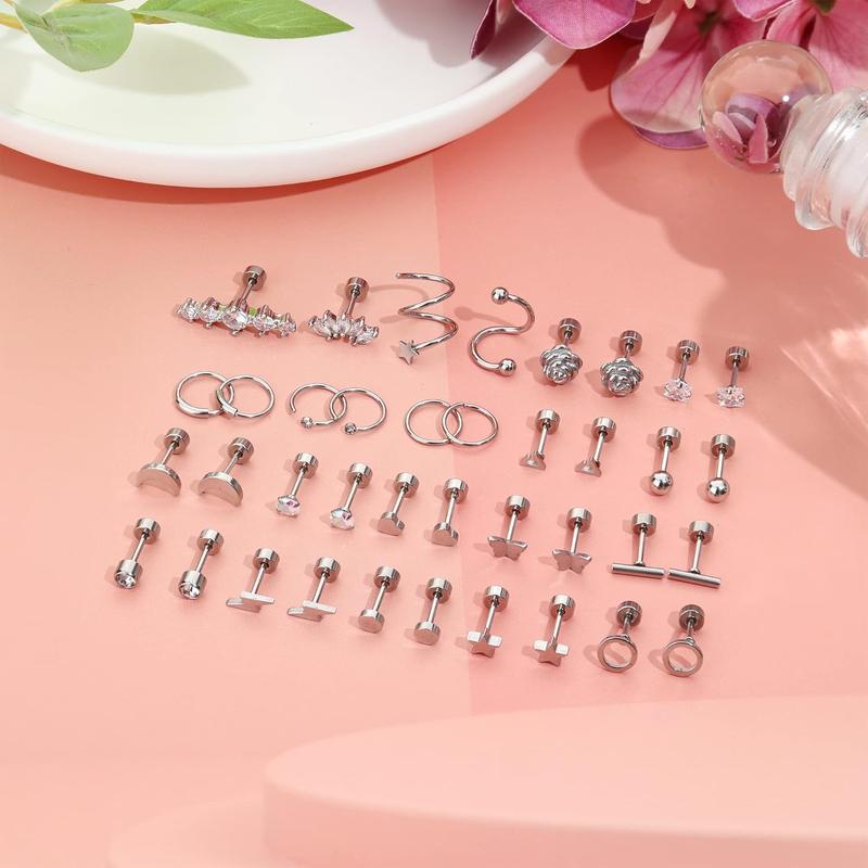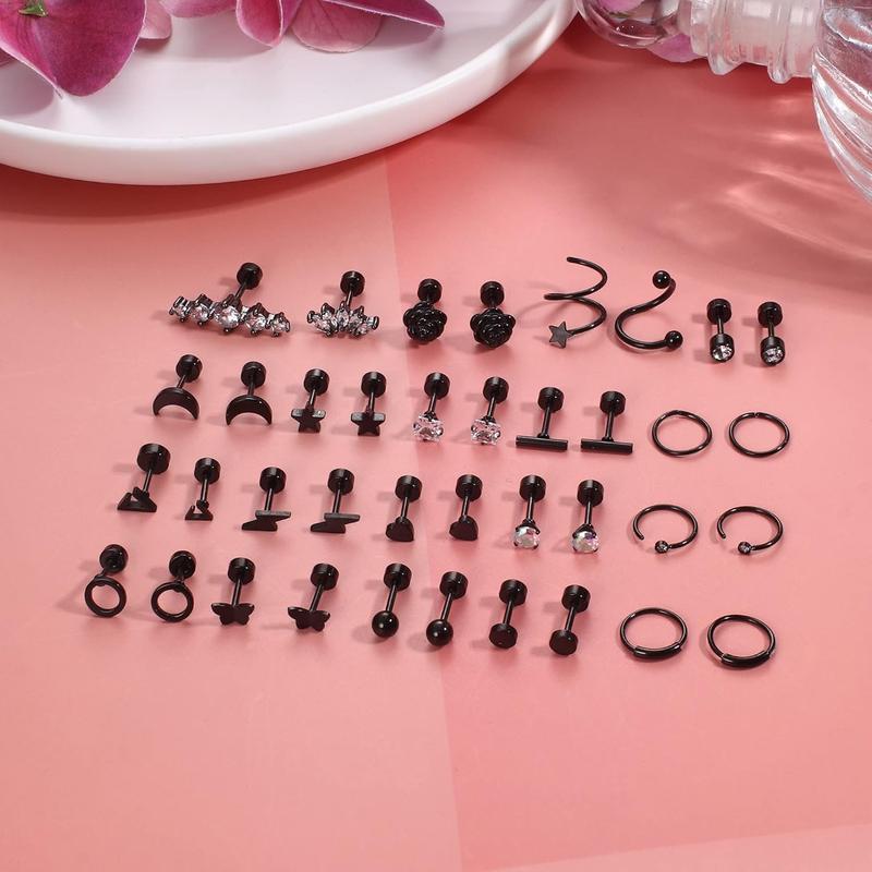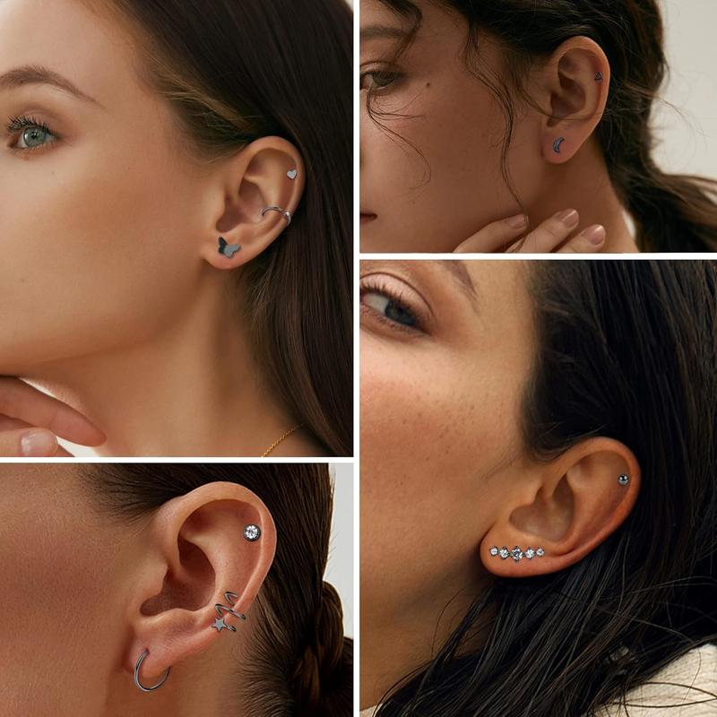 [AFFORDABLE CARTILAGE EARRINGS]: One order includes 38 count cartilage earrings: 14 pairs flatback earrings; 3 pairs cartilage hoop earrings; 2 count twist helix earrings; 2 count cubic zircon upper ear cartilage earrings.