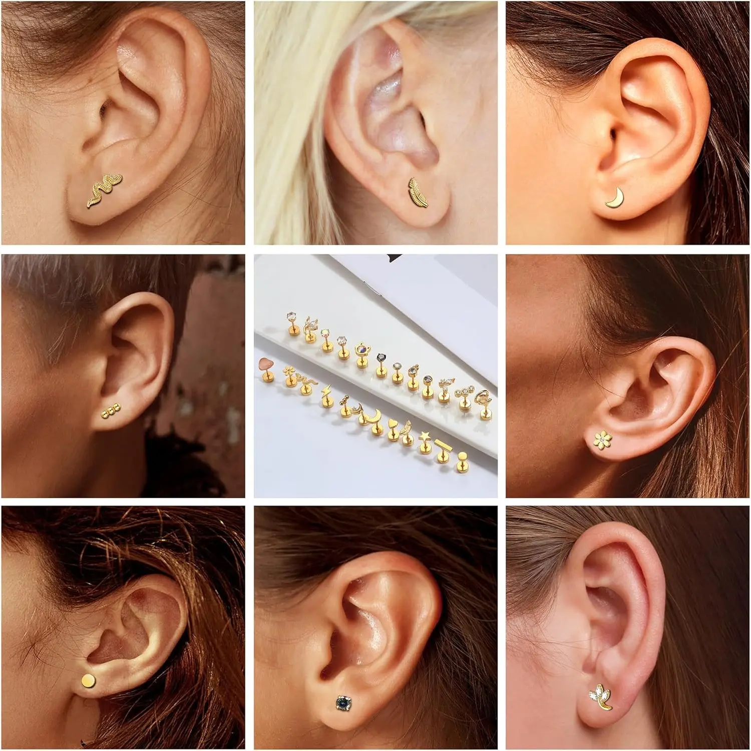 New Cute 24Pcs Flat Back Cartilage Earrings for Women Men