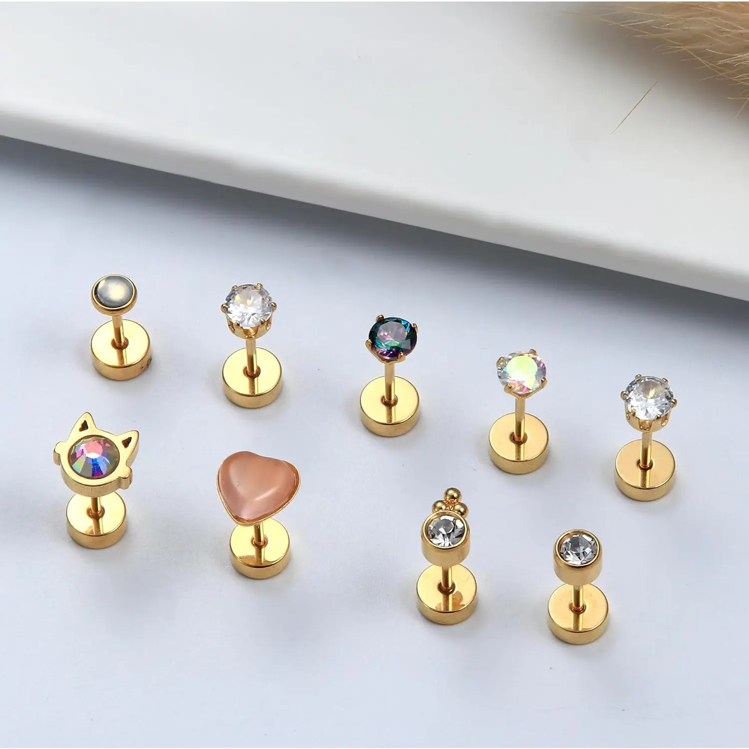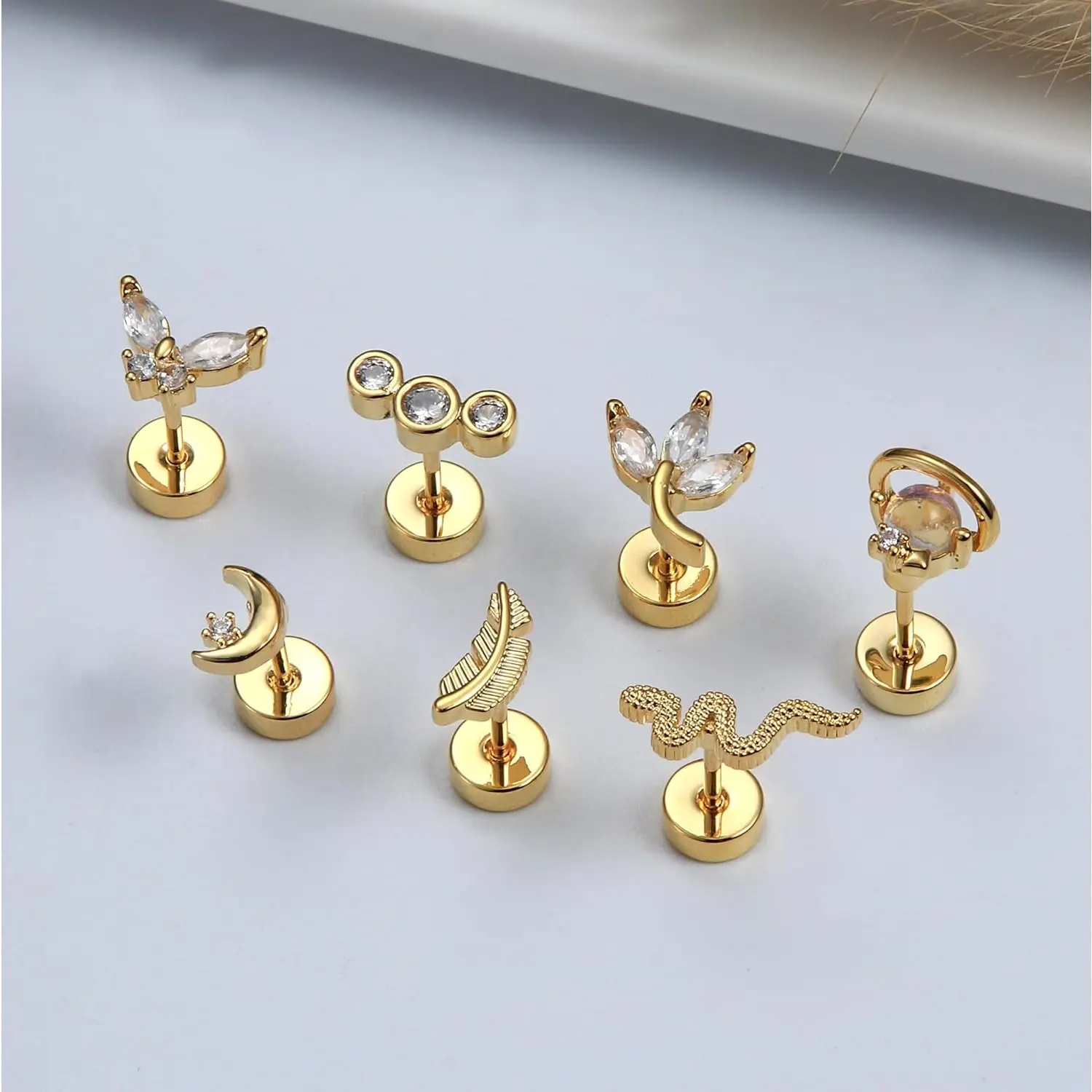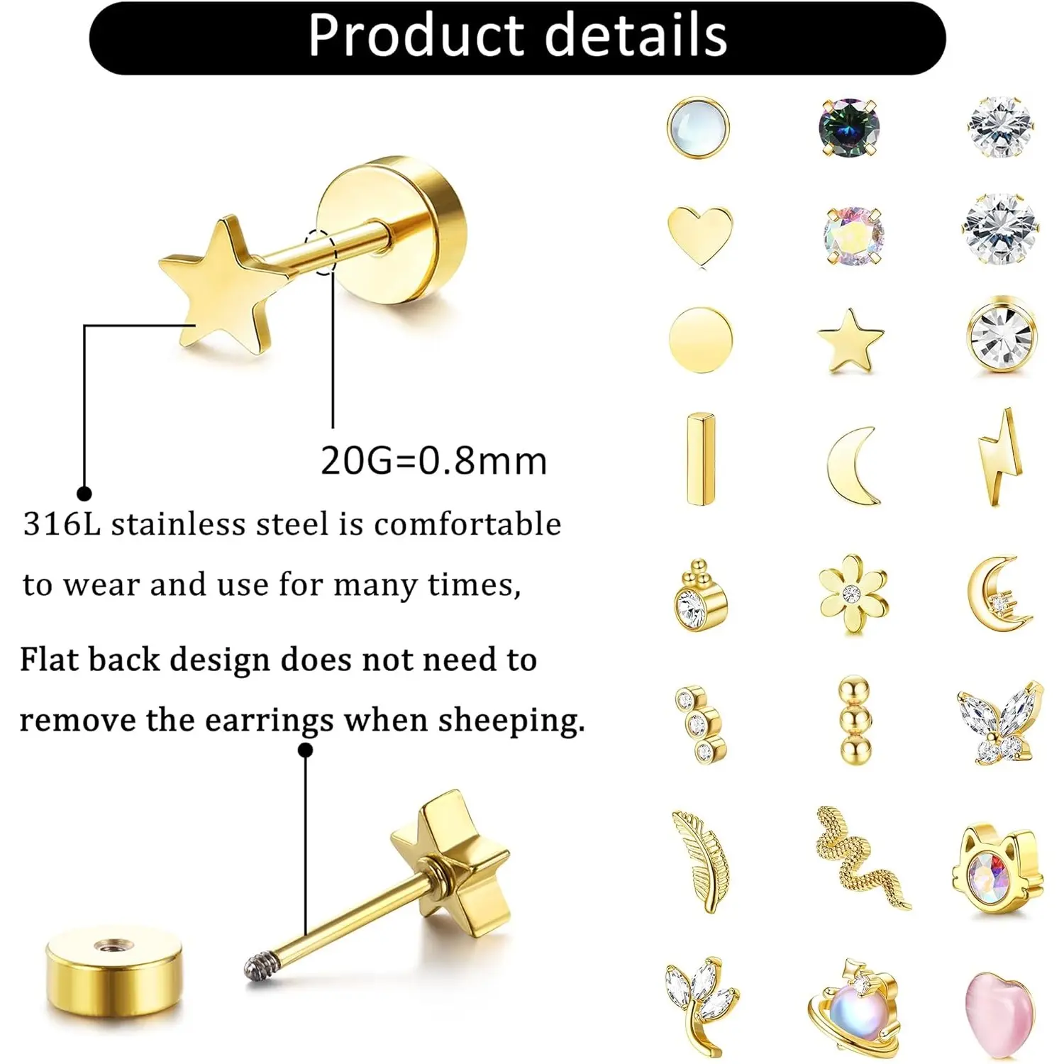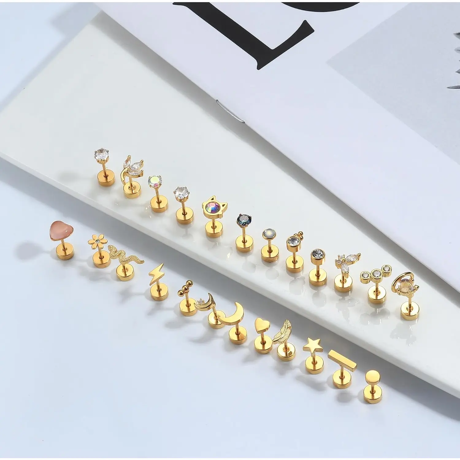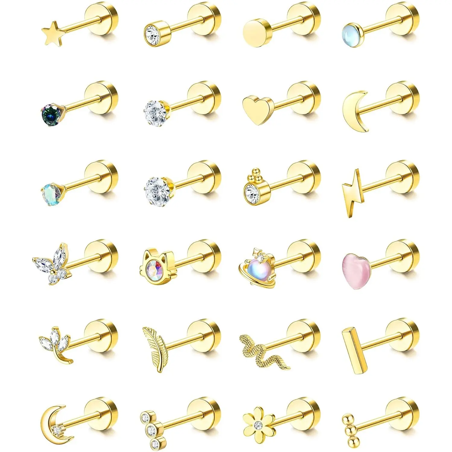5. Exquisite 24Pcs Cartilage Earrings for Women Men 20G Surgical Steel Flat Back Stud Earrings CZ Helix Conch Small Flatback Earrings Hypoallergenic Nap Earrings