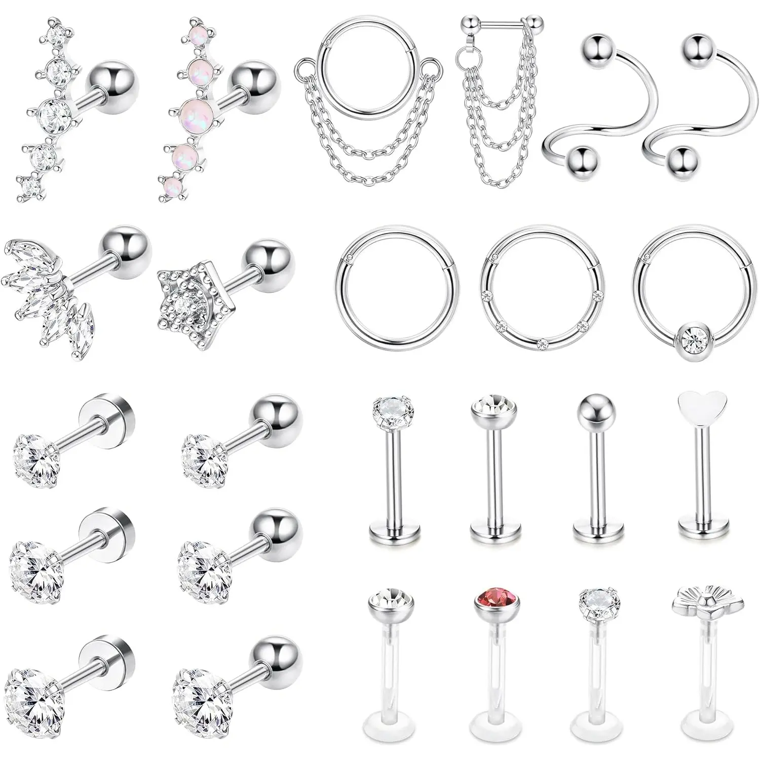 FASACCO 25 Count 16G Cartilage Piercing Jewelry Surgical Steel Helix Piercing Jewelry Forward Helix Earrings Conch Hoop Cartilage Earring StudFASACCO 25 Count 16G Cartilage Piercing Jewelry Surgical Steel Helix Piercing Jewelry Forward Helix Earrings Conch Hoop Cartilage Earring Stud