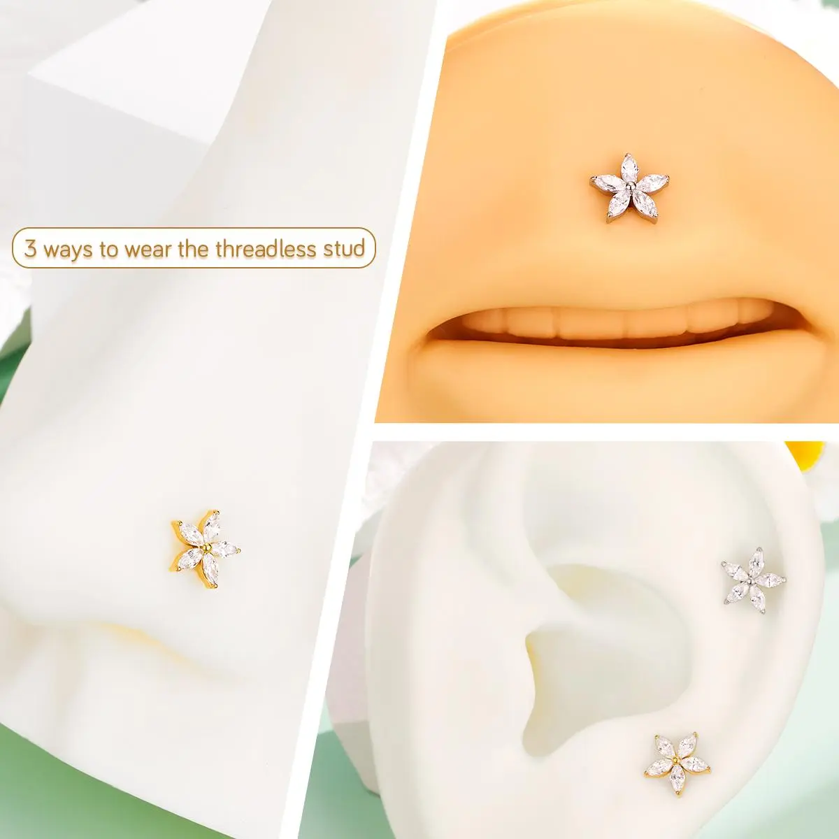 Oufer 16G Flower Threadless/Push Pin Flat Back Ashely Piercing Cartilage Stud Earring for Woman