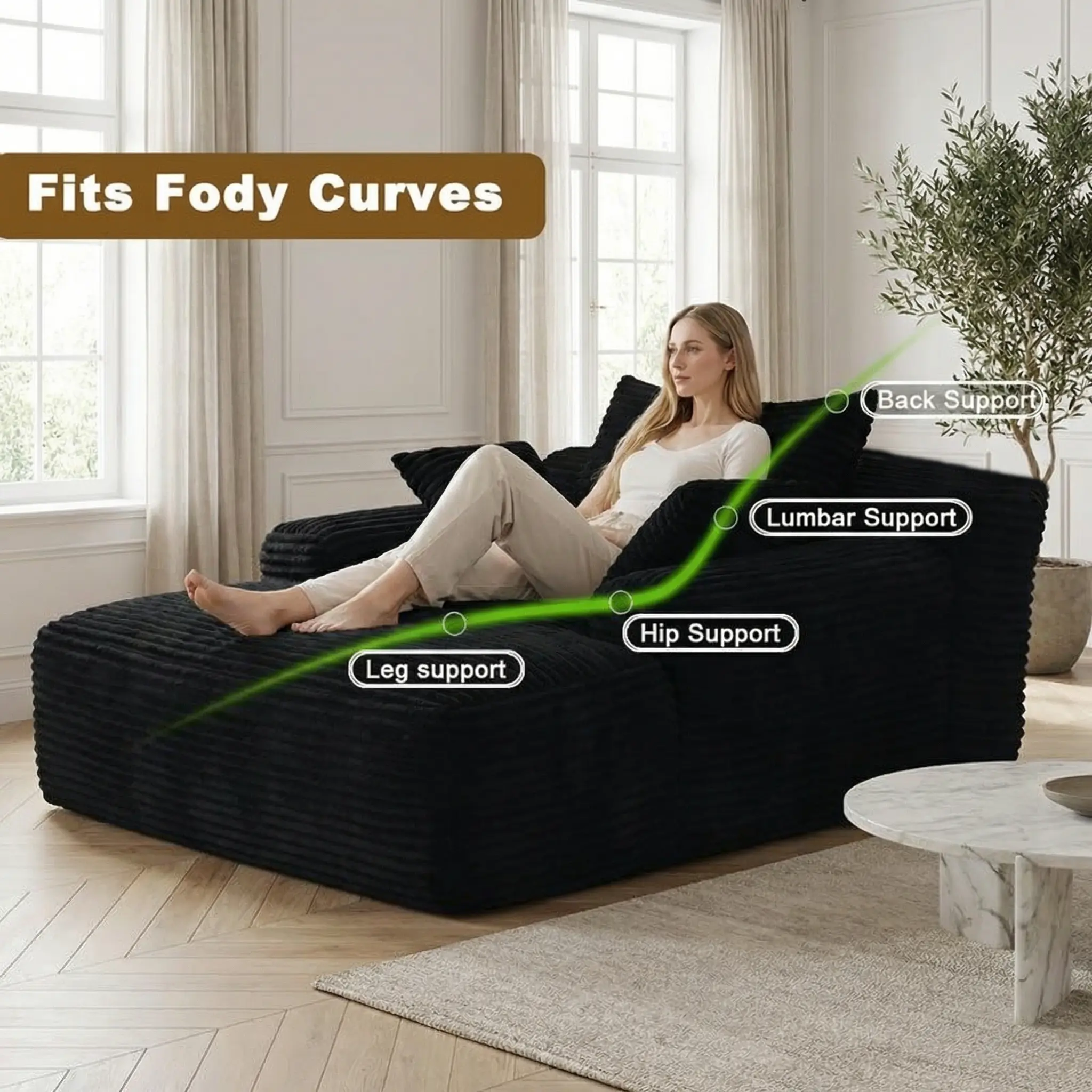 Image Description 📸- The image shows a person sitting on the Yomsum Boneless Couch Bed Chaise Lounge, highlighting its comfort and design.