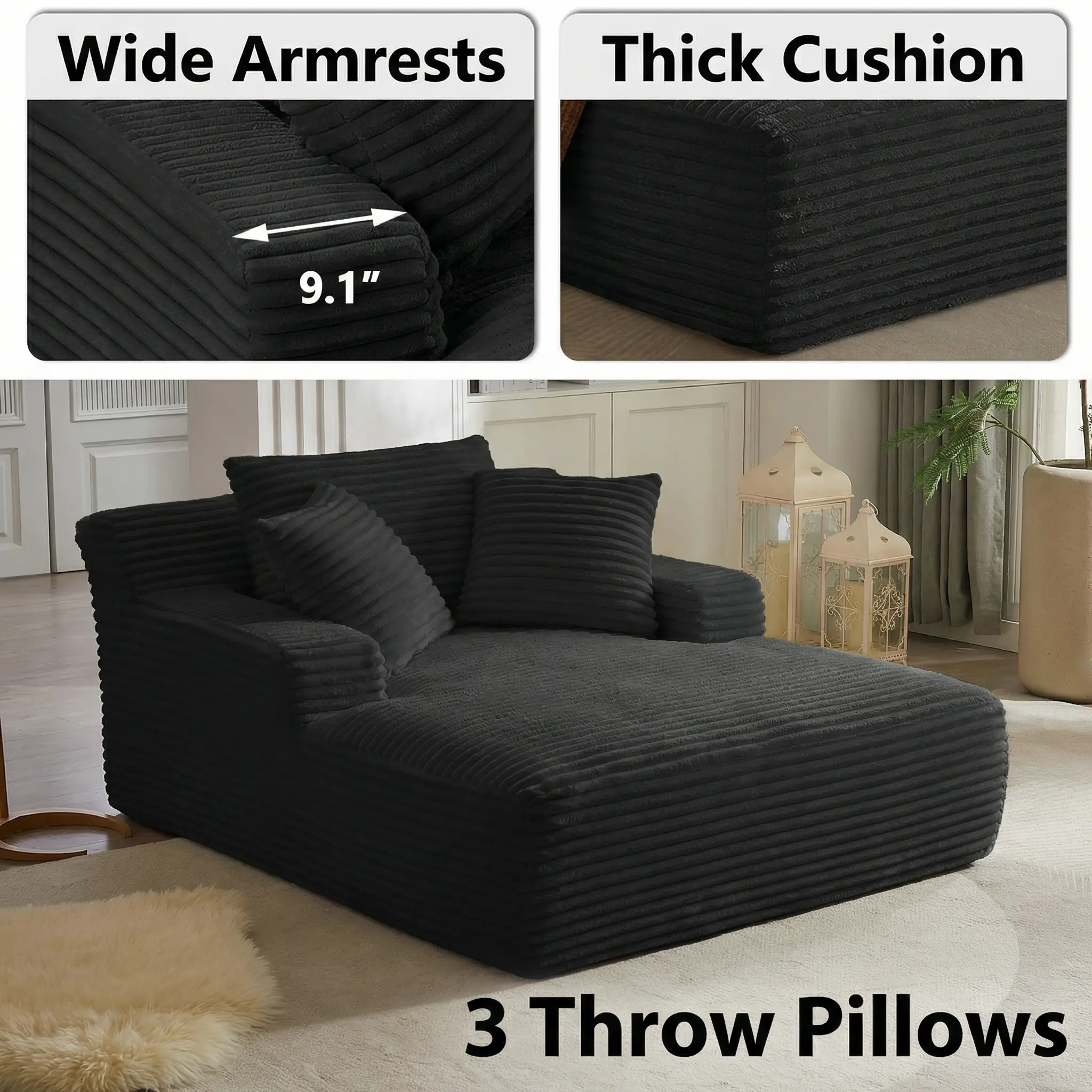 Yomsum Boneless Couch Bed Chaise Lounge Series Plush Corduroy 1200LBS Load Bearing No Assembly Required 24 Months Warranty