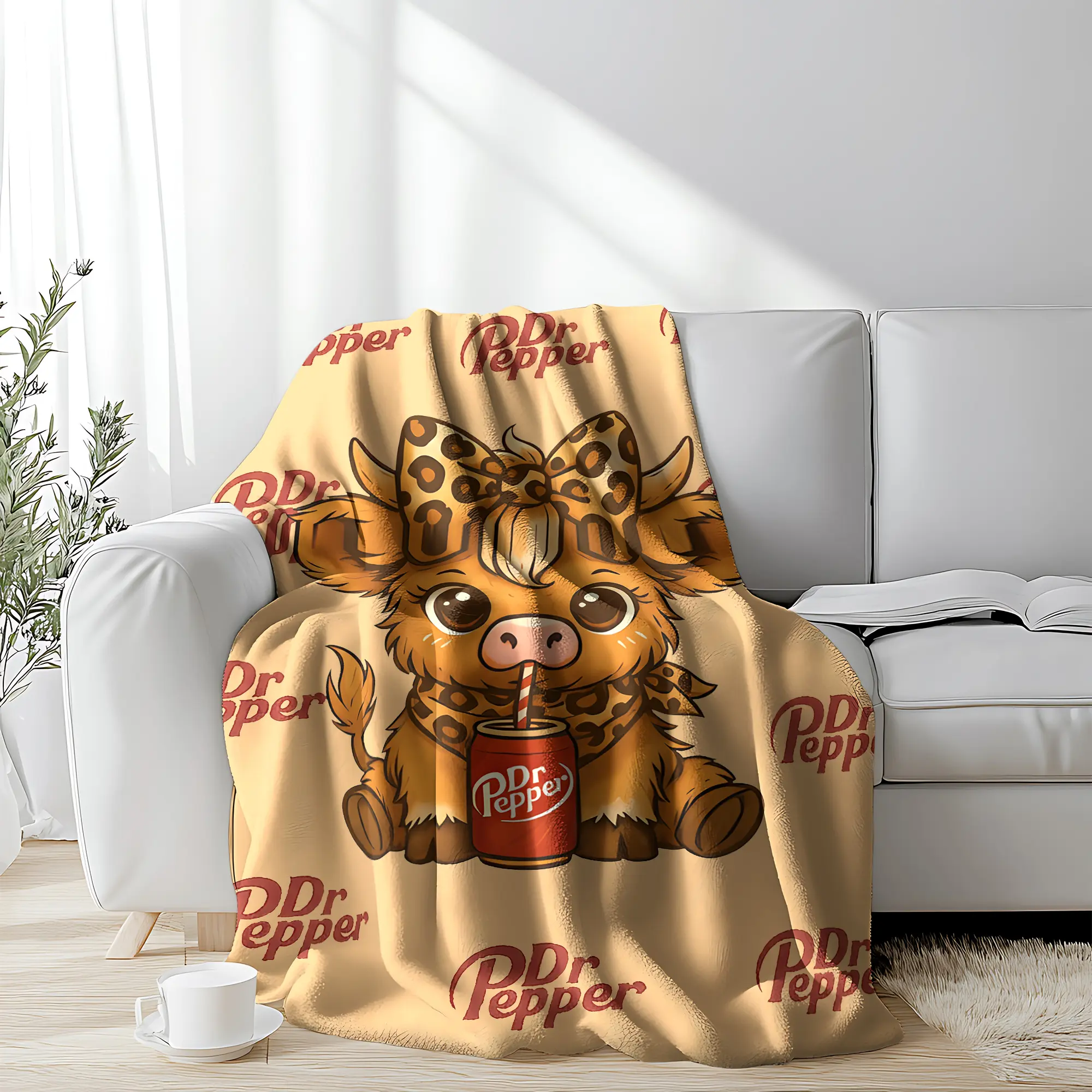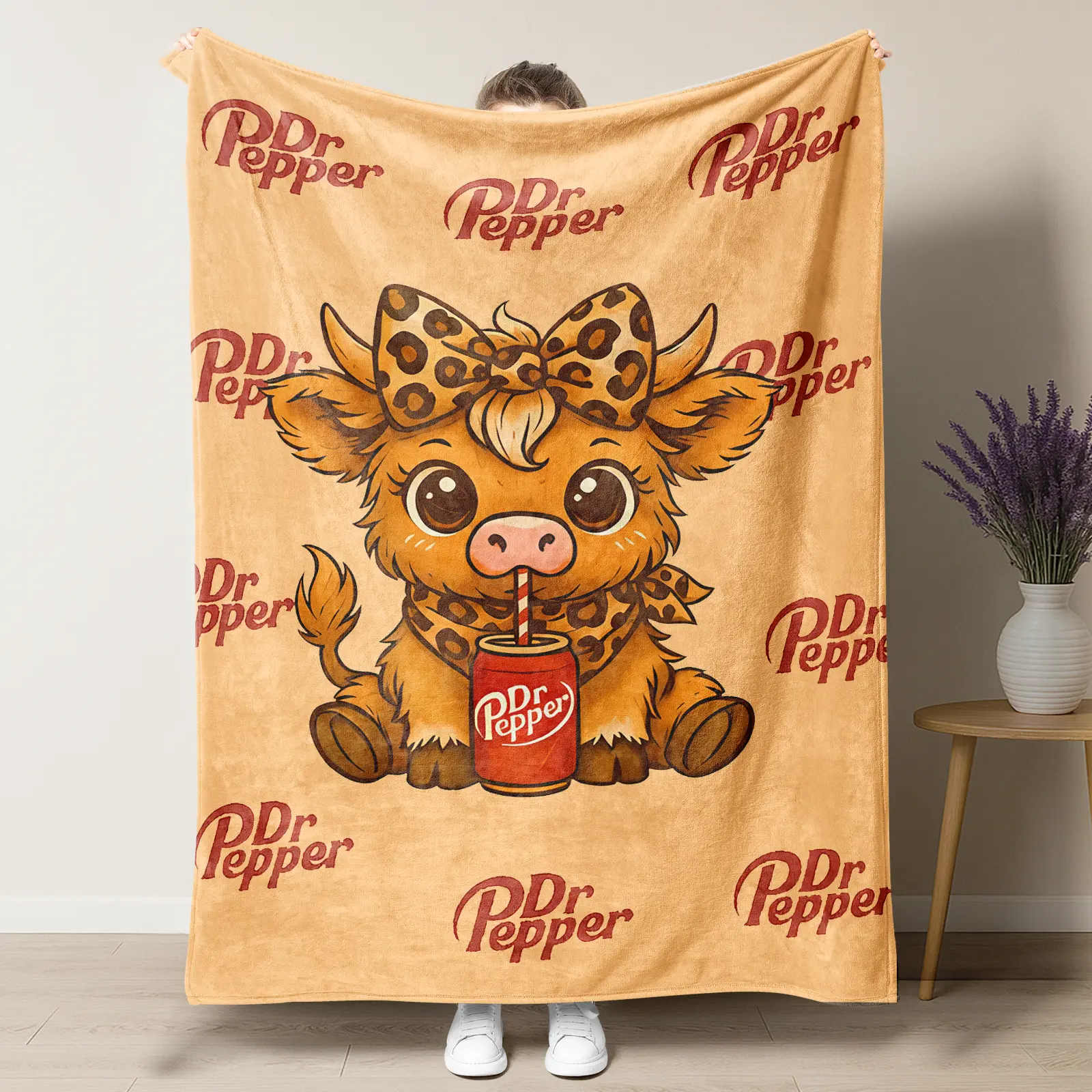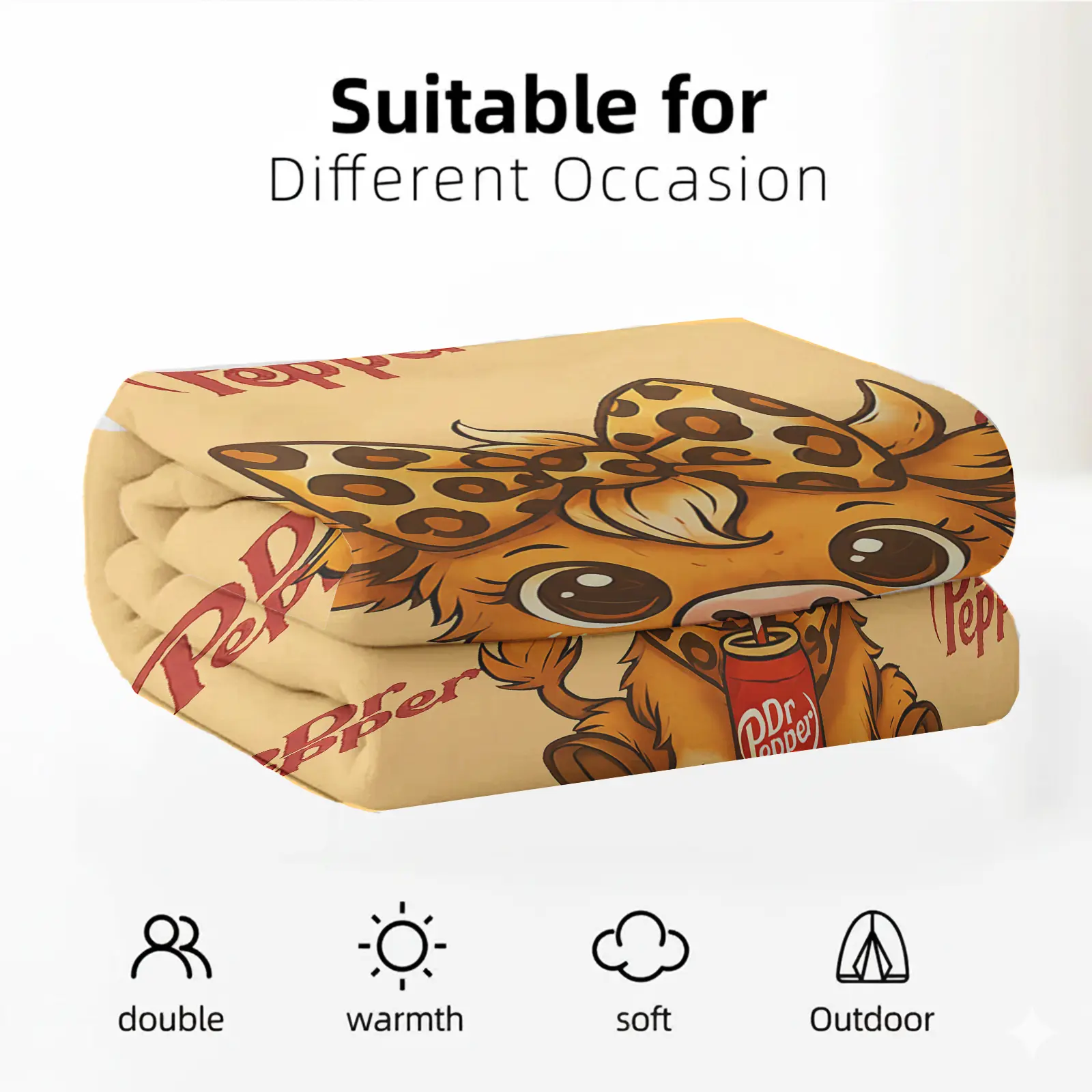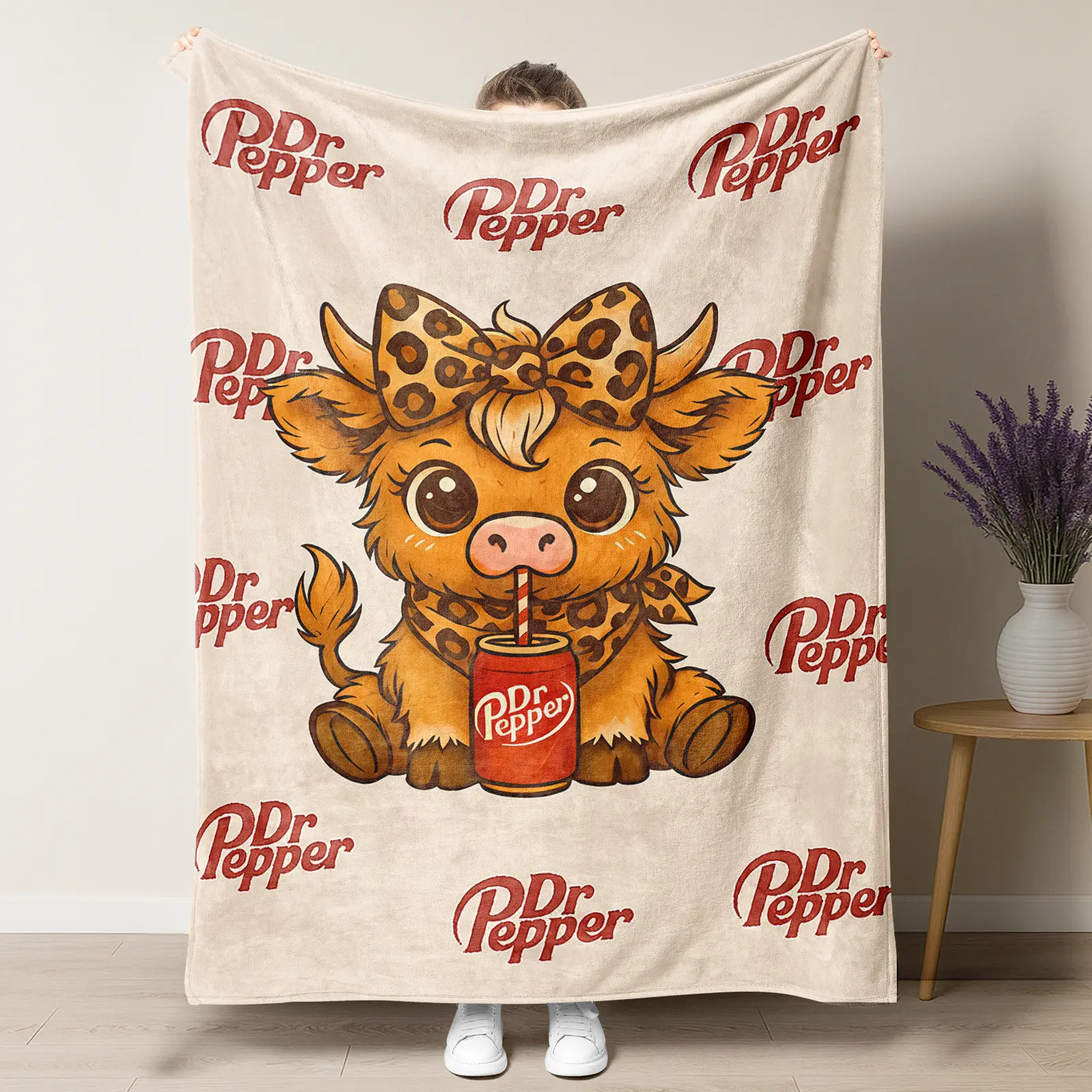 My daughter loves Dr. Pepper and highland cows so this blanket was a big hit for Christmas. It is the perfect size
